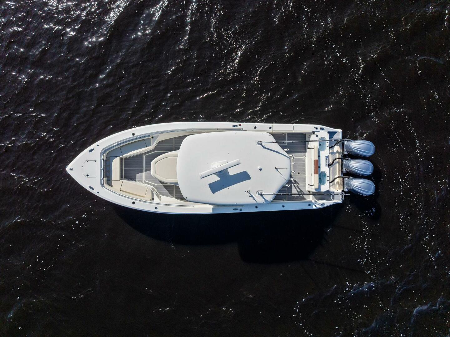 Under the hood, the 350 CC is often powered by triple Yamaha F300 outboard engines, for a combined total of 900 horsepower. This powertrain gives it serious performance: according to listings, it can hit a top speed around 53 knots. The fuel capacity is large—320 gallons—supporting long-range runs.