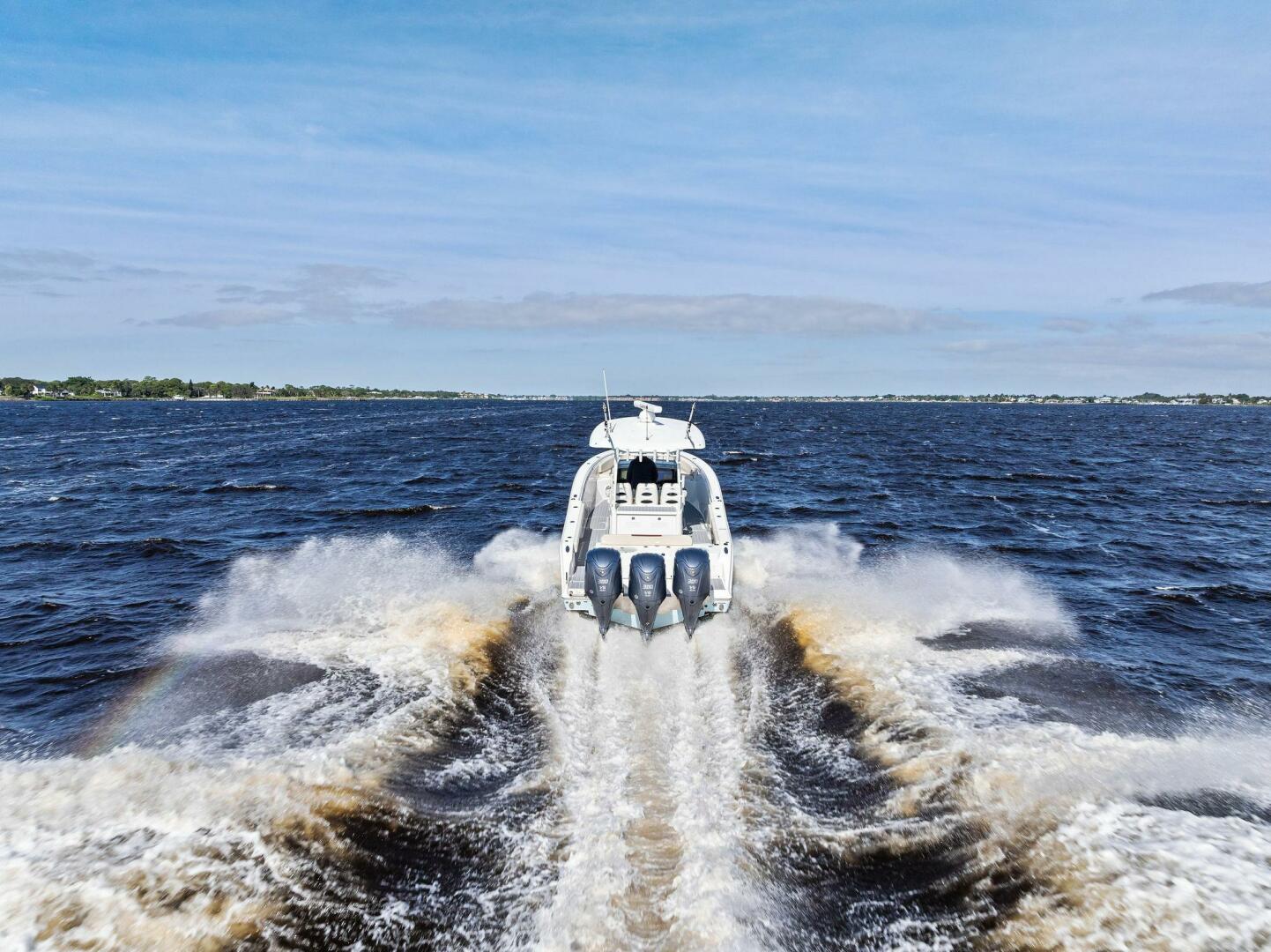Finally, the ride and weight: according to spec, the dry weight of the 350 CC is about 10,560 lb, and the transom deadrise is 21.6°, which suggests a good balance between seaworthiness and performance.