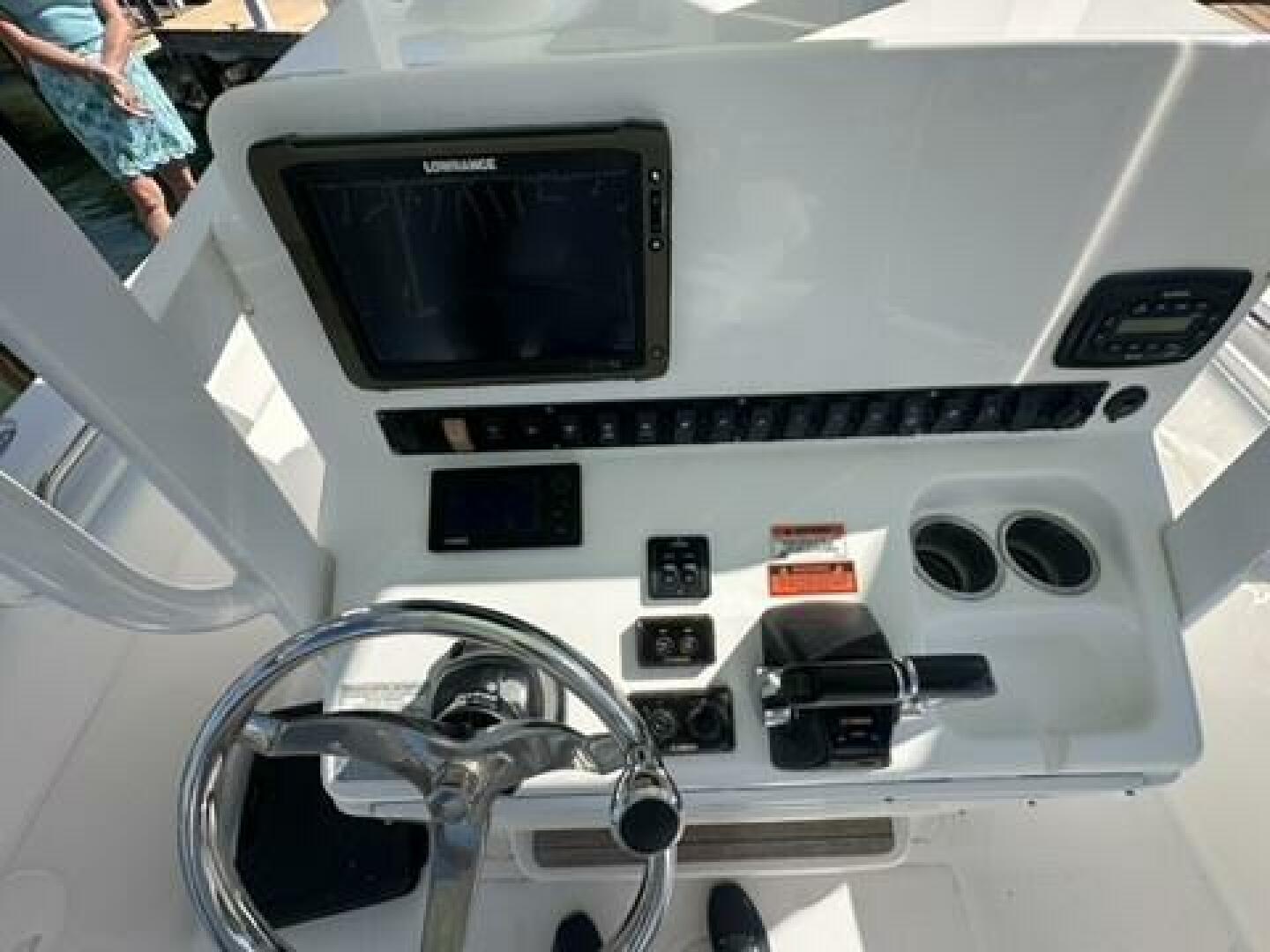 Introducing the 2014 Sea Hunt Gamefish 27 Forward Seating. A remarkable center console boat, measuring an impressive 27' 2" feet in overall length with a 9' 4" beam. The 27 Gamefish is designed for both performance and comfort. It is powered by twin Yamaha F200 outboard engines, each delivering 200 horsepower, ensuring excellent cruise speed & efficiency while wide open throttle speed over 50. With only 514 hours of use, these engines promise reliability and efficiency. Owner has performed all annual maintenance throughout ownership. This boat comes equipped with an electric windlass, making anchoring effortless. Ready to tournament fish she's equipped with multiple large bait wells, built in tackle storage lockers, large insulated bow storage, in deck storage, huge stern fish box & Hard top mounted outriggers. The boat's forward seating with removable backrests provides ample space for relaxation and socializing, perfect for family outings or fishing trips. This well-maintained model combines functionality with style, making it an excellent choice for those seeking adventure on the water. Whether you're family cruising or tournament fishing, the Sea Hunt Gamefish 27 is ready to deliver unforgettable moments on the waves.