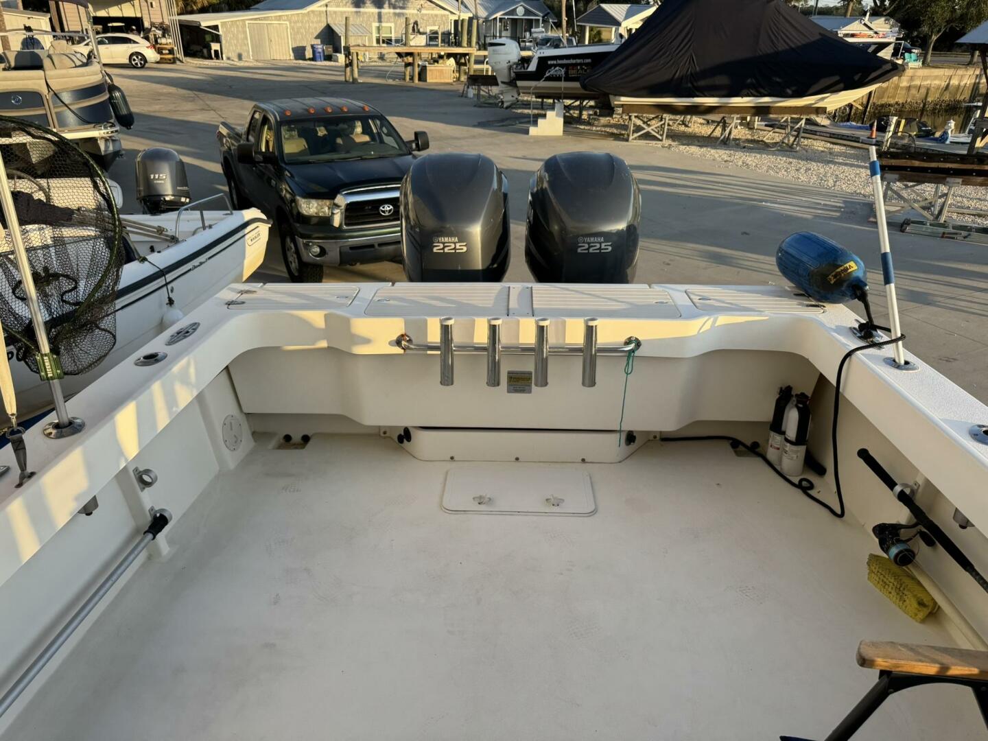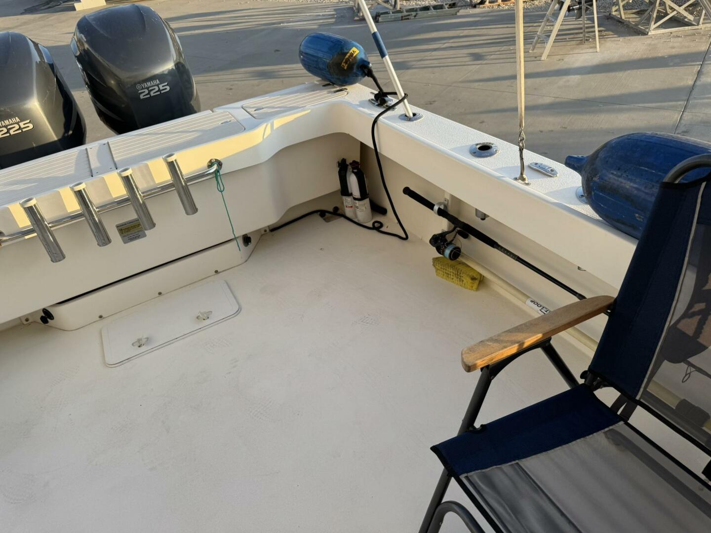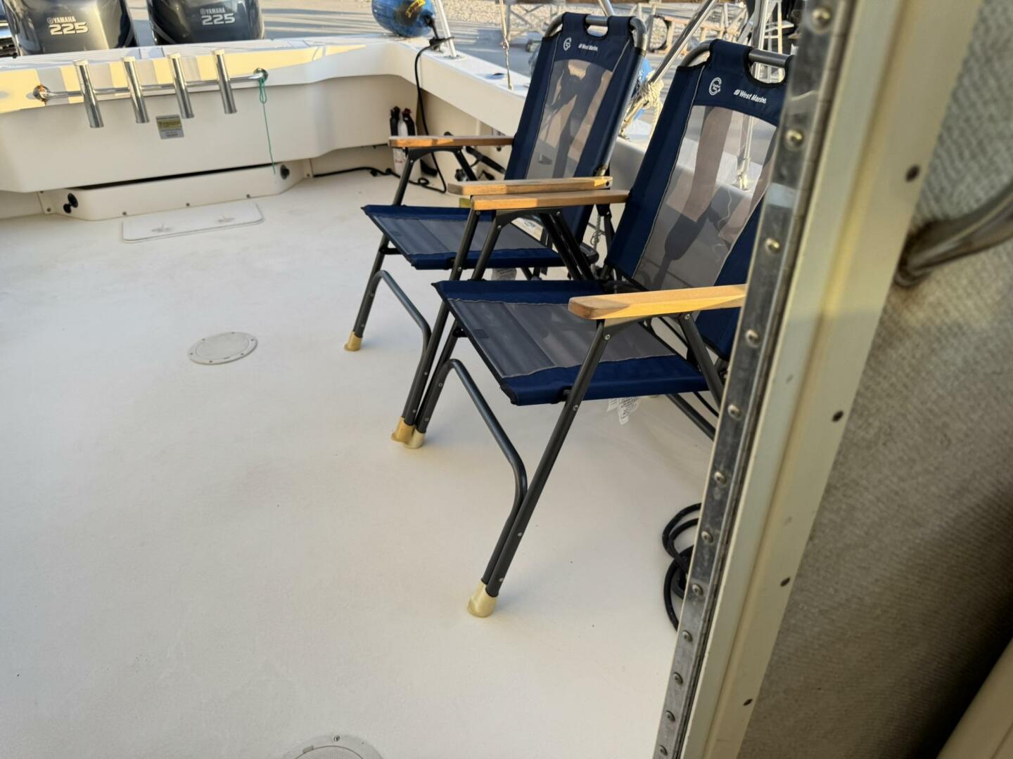 | Notable Upgrades: • Bow thruster (major docking/maneuvering upgrade) • Cockpit second station with bow thruster control • Twin Yamaha 225 4-stroke outboards (2006) • Enclosed pilothouse for all-weather operation • Windlass anchor system + fishing-ready cockpit |