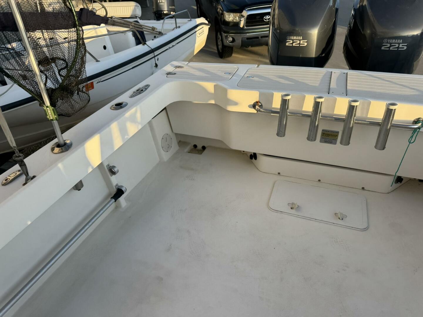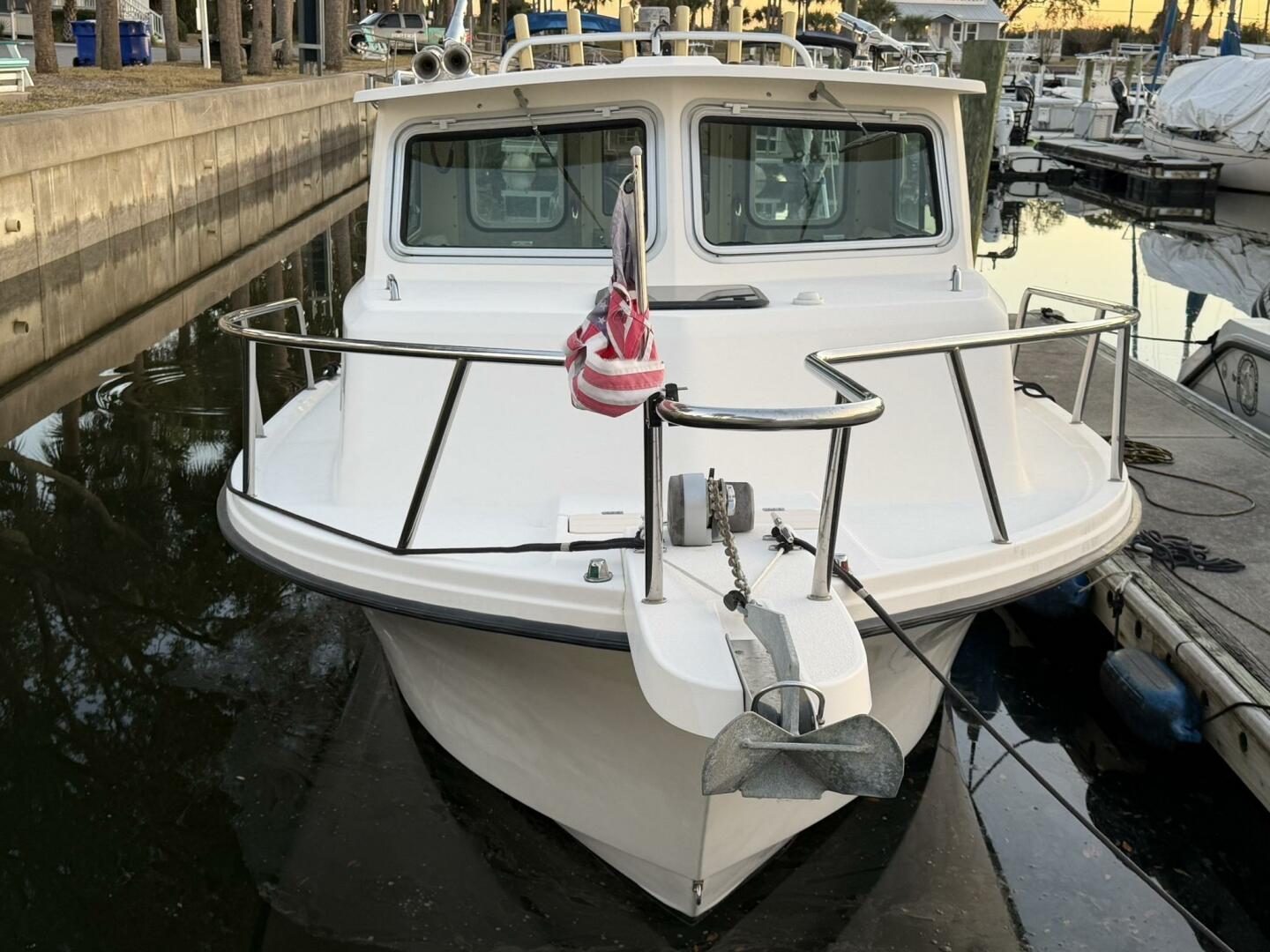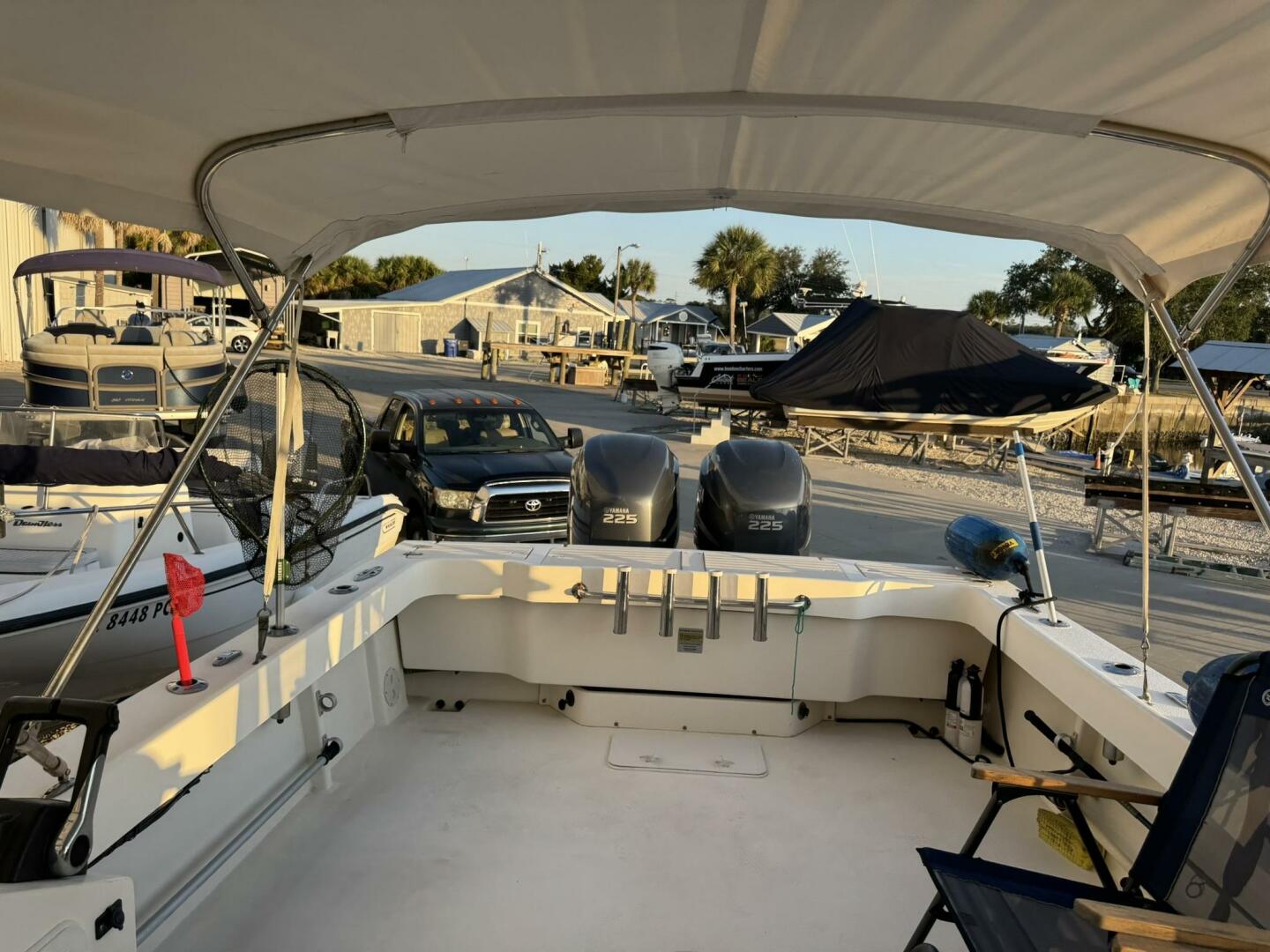 | Notable Upgrades: • Bow thruster (major docking/maneuvering upgrade) • Cockpit second station with bow thruster control • Twin Yamaha 225 4-stroke outboards (2006) • Enclosed pilothouse for all-weather operation • Windlass anchor system + fishing-ready cockpit |