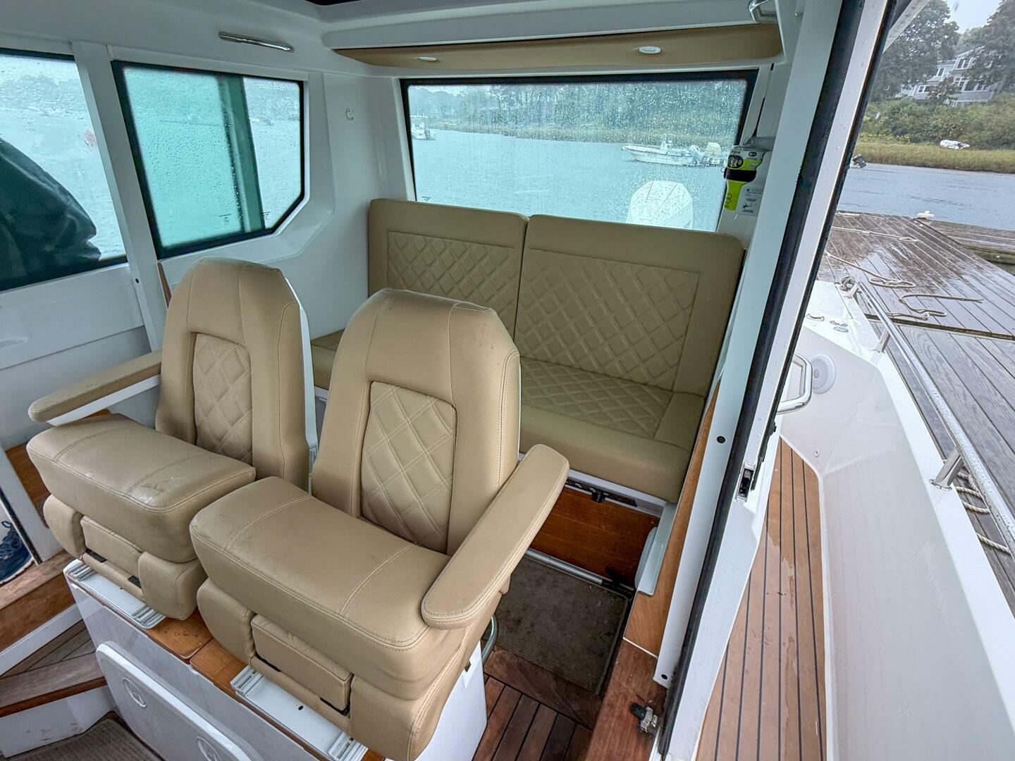 The Axopar 28 Cabin is well-known for her excellent performance and sea keeping ability in inclement weather. Enjoy the comforts of your SUV while on the water inside the protected cabin: warm, dry and comfortable with the diesel heater running or open the side doors and sunroof when the weather is nice and the boat becomes an open center console.