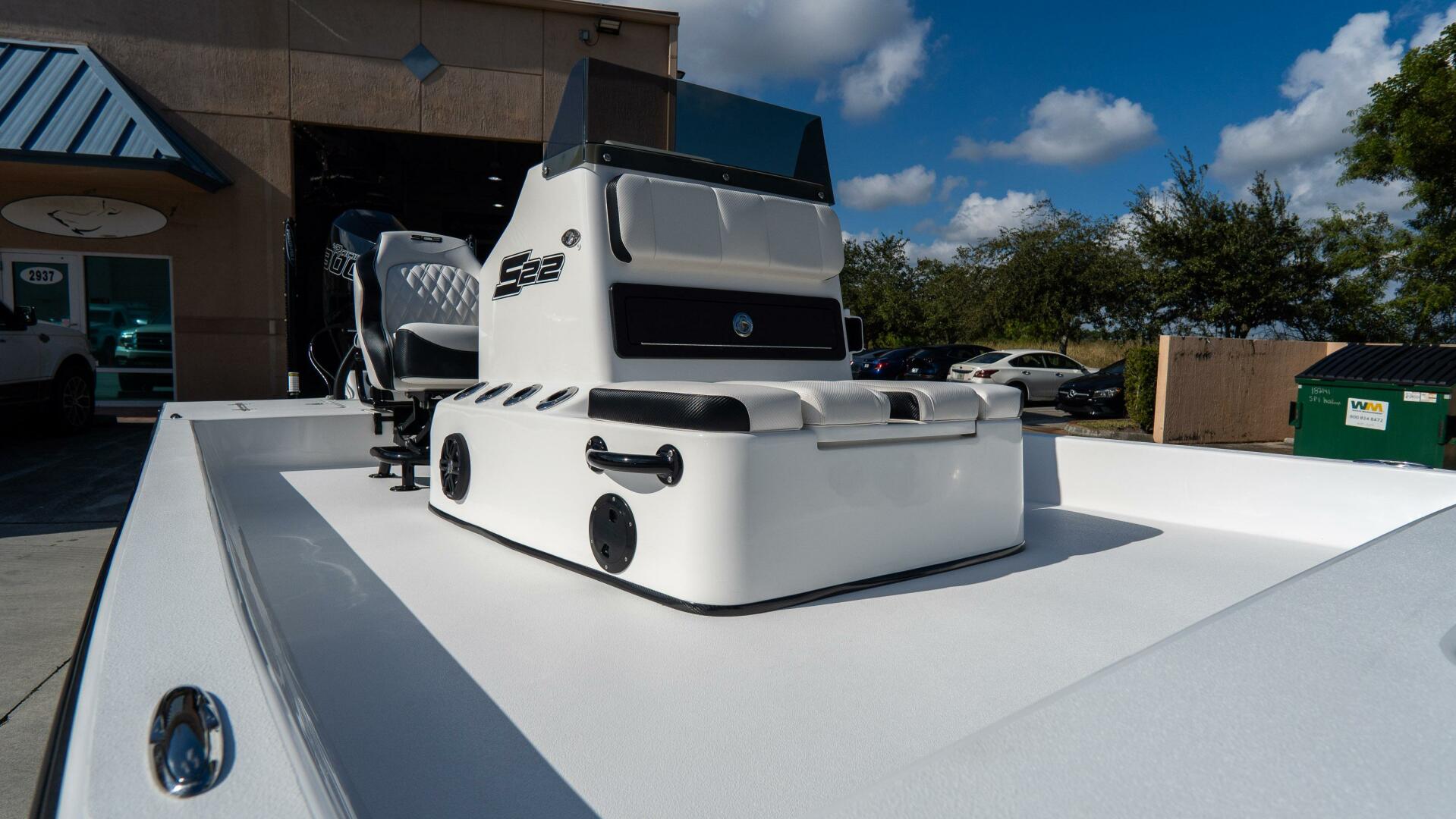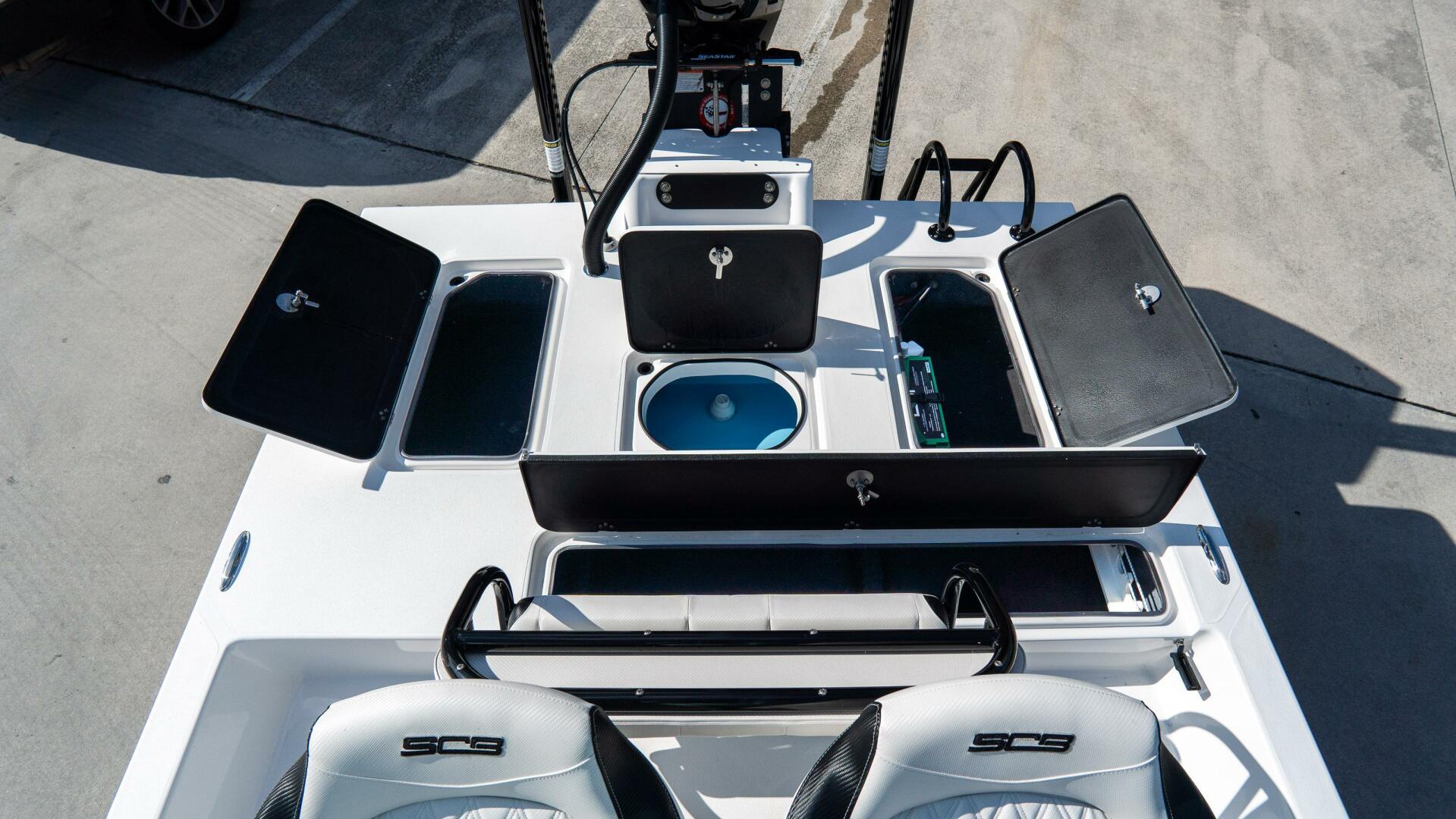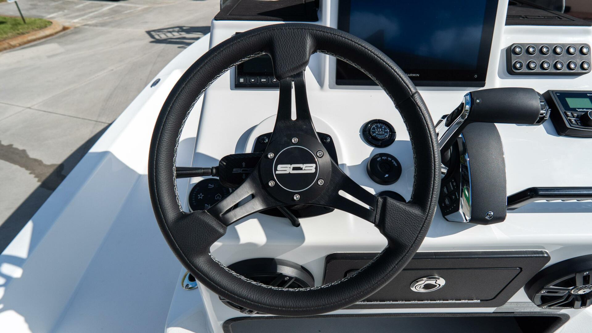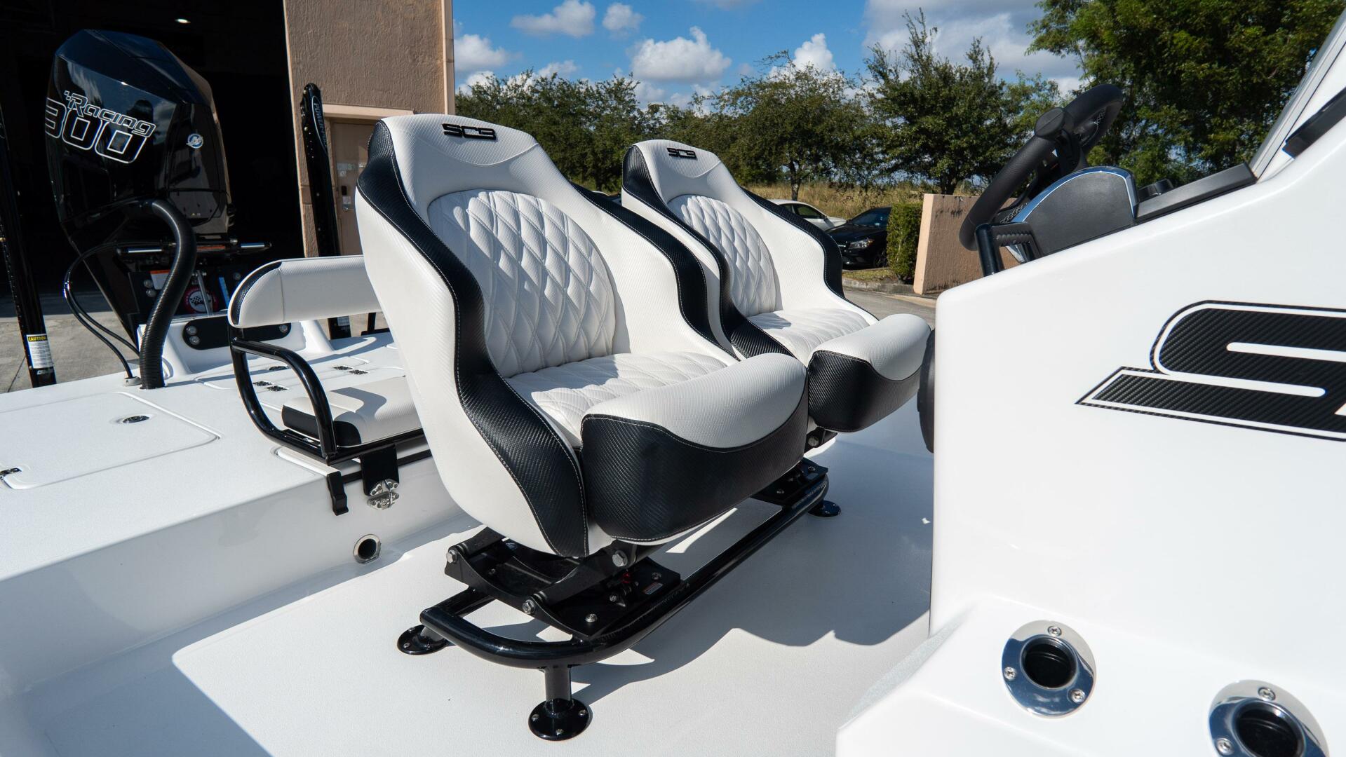 The boat is equipped with Mercury rigging, including power-assisted steering and trim tabs, plus SCB’s signature square console with forward livewell, offering plenty of inshore functionality. The upgraded Shockwave helm seatingpaired with the Taco Anclote seating package ensures a smooth and comfortable ride in any conditions.