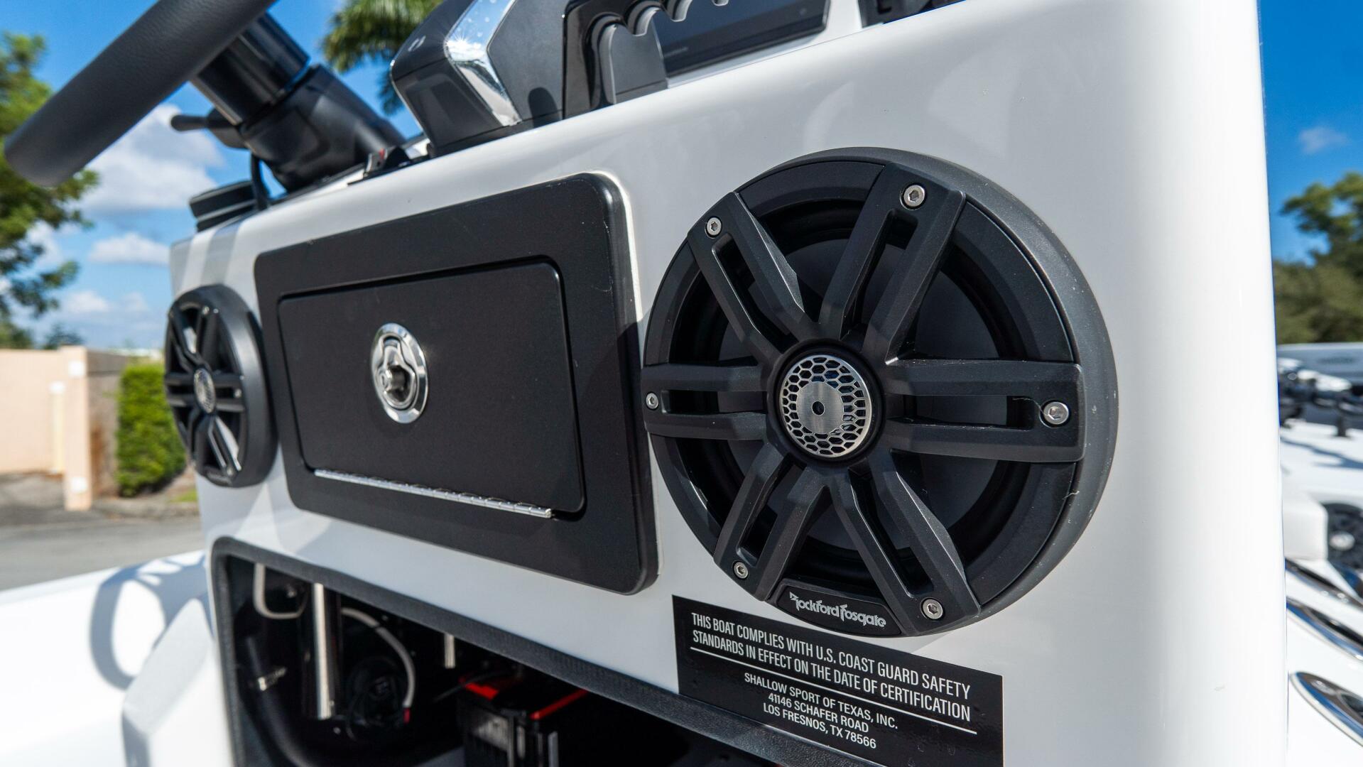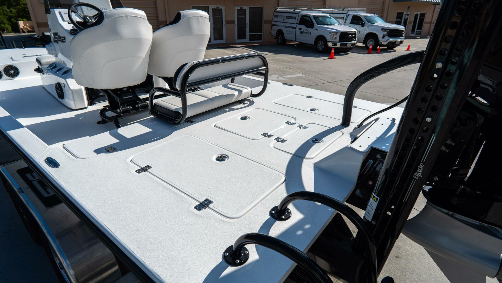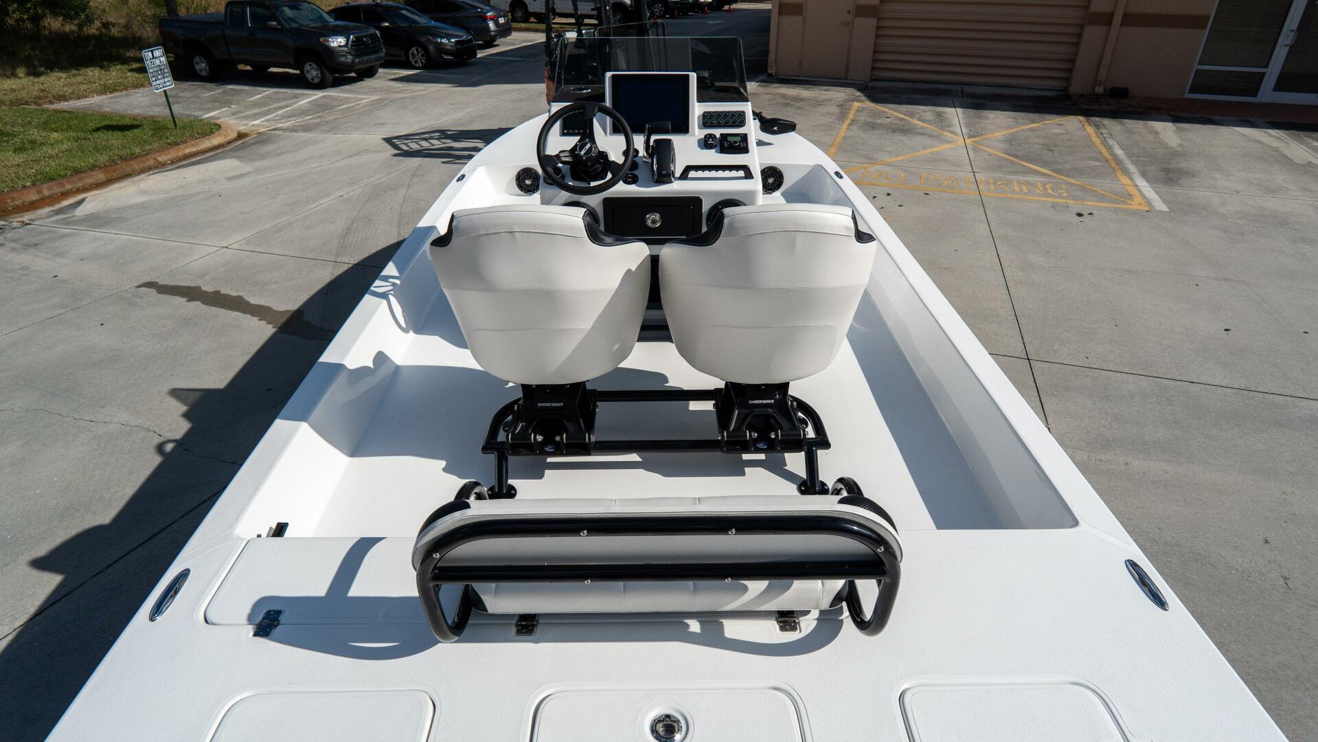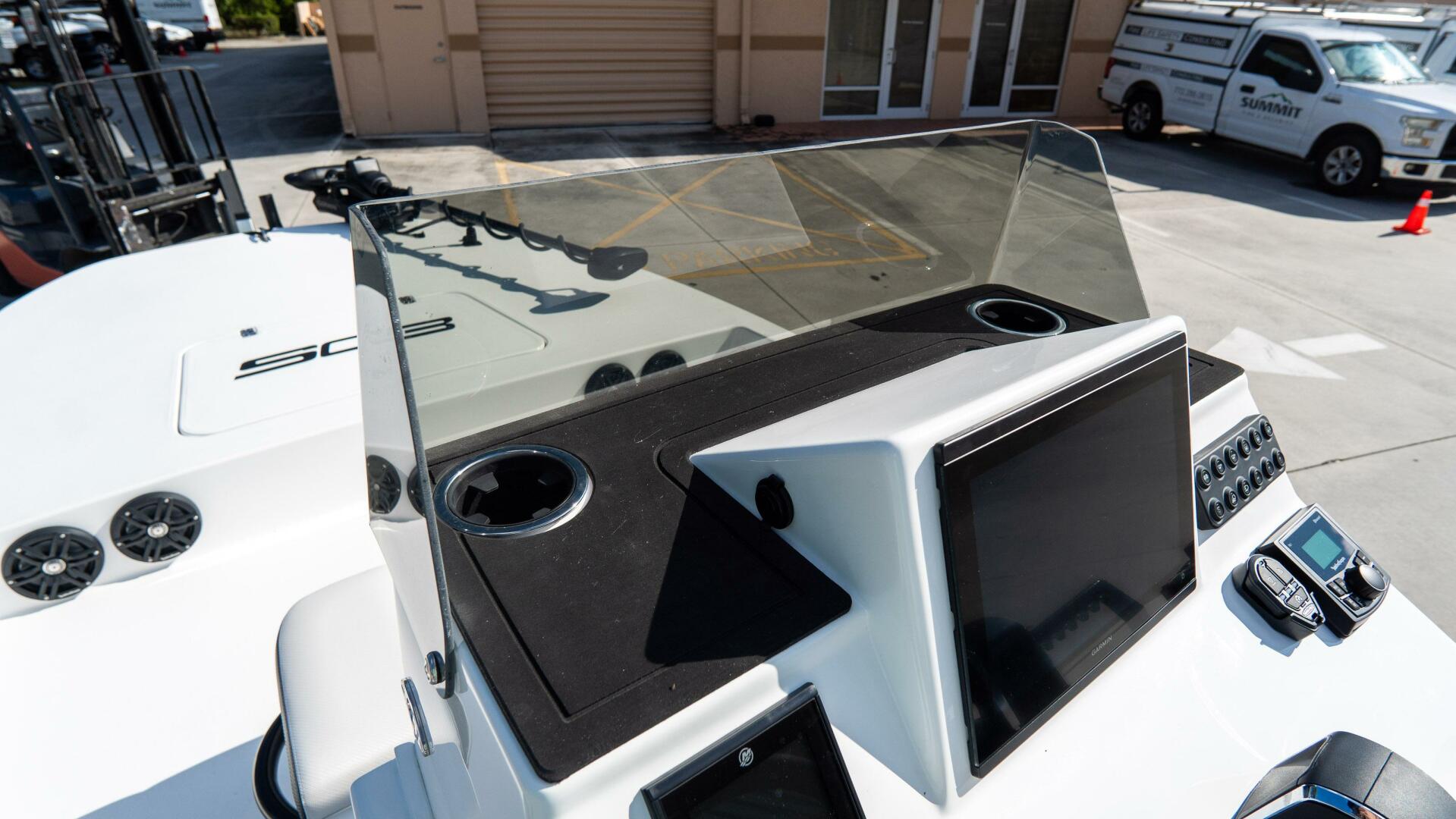 The boat is equipped with Mercury rigging, including power-assisted steering and trim tabs, plus SCB’s signature square console with forward livewell, offering plenty of inshore functionality. The upgraded Shockwave helm seatingpaired with the Taco Anclote seating package ensures a smooth and comfortable ride in any conditions.