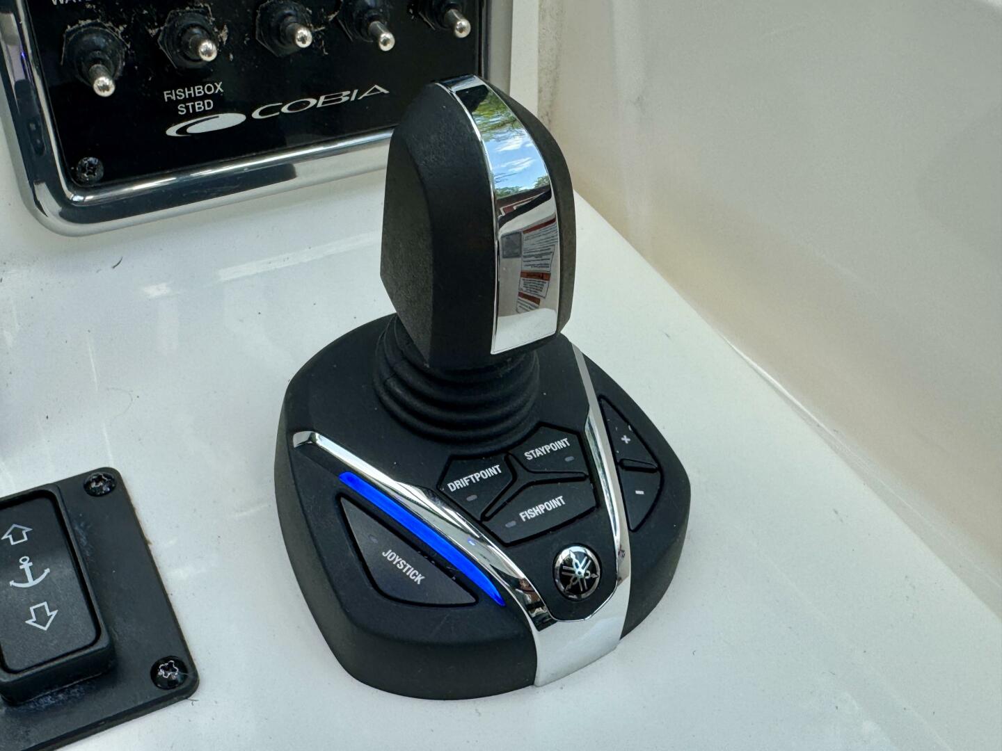 Powered by twin 250HP Yamaha 4.2L V6 4-stroke outboard motors equipped with Yamaha HelmMaster EX w/DES (Digital Electric Steering), joystick steering, Yamaha auto pilot, wireless key FOB, Yamaha command link plus CL5 touchscreen, Bennett trim tabs with indicator gauge, a 4-way electric helm seat with flip-up bolster & fold down arm rests, a GEM stainless steel hydraulic tilt steering wheel with power knob, VHF radio, Ritchie compass, a Garmin GPSMap 8616xsv multi-function touchscreen with integrated GPS/chartplotter/depth/fish finder/sonar and Garmin fantom 24 radar. Also controlled from the helm station is an upgraded Lewmar stainless steel deluxe windlass anchor w/300' line upgrade, a driver side windshield wiper w/washer fluid, easy access battery selector switches for a 4-bank group 31 AGM batteries with 4-bank onboard battery charger, and a JL Audio AM/FM/USB/Aux/Bluetooth/Satellite-ready stereo with amplifier and 8 speakers.