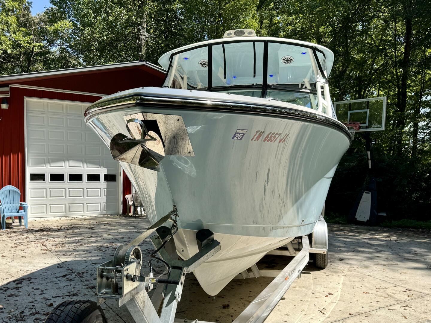 | Notable Upgrades: Garmin GPSMap Electronics with Garmin Fantom Radar, Upgraded JL Audio Stereo, a Tandem Axle Aluminum Trailer, & Much More! One-Owner - Transferable Warranty - All Fresh Water Use! |