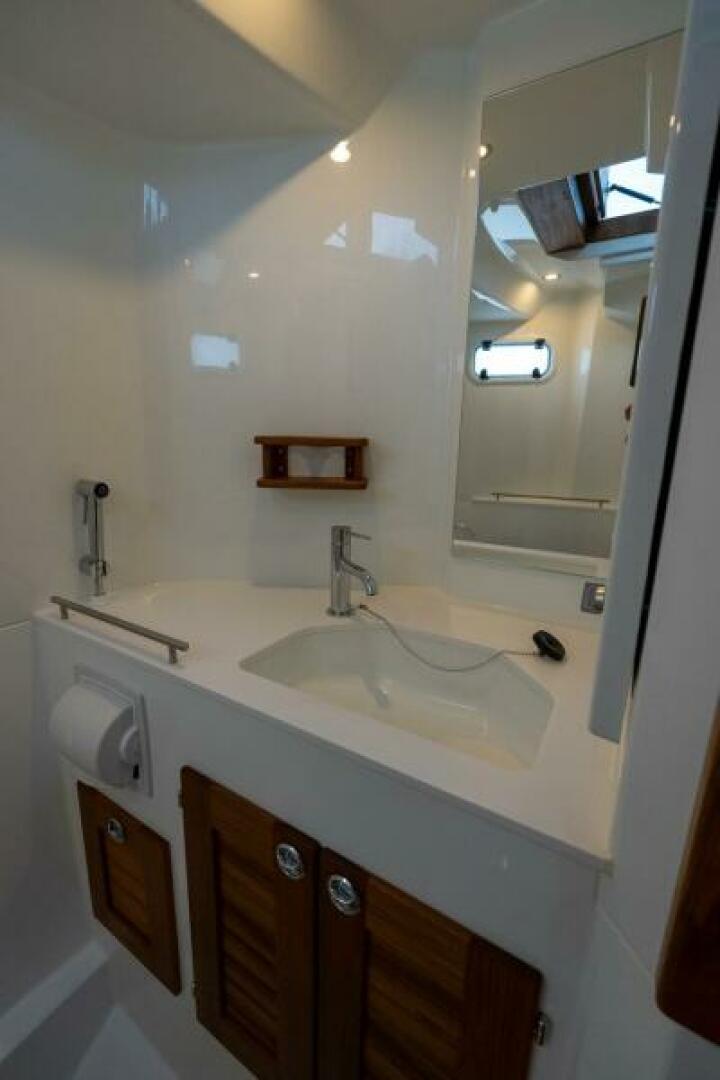 - Shower on aft deck/swimming platform from galley pump fresh water cold/hot