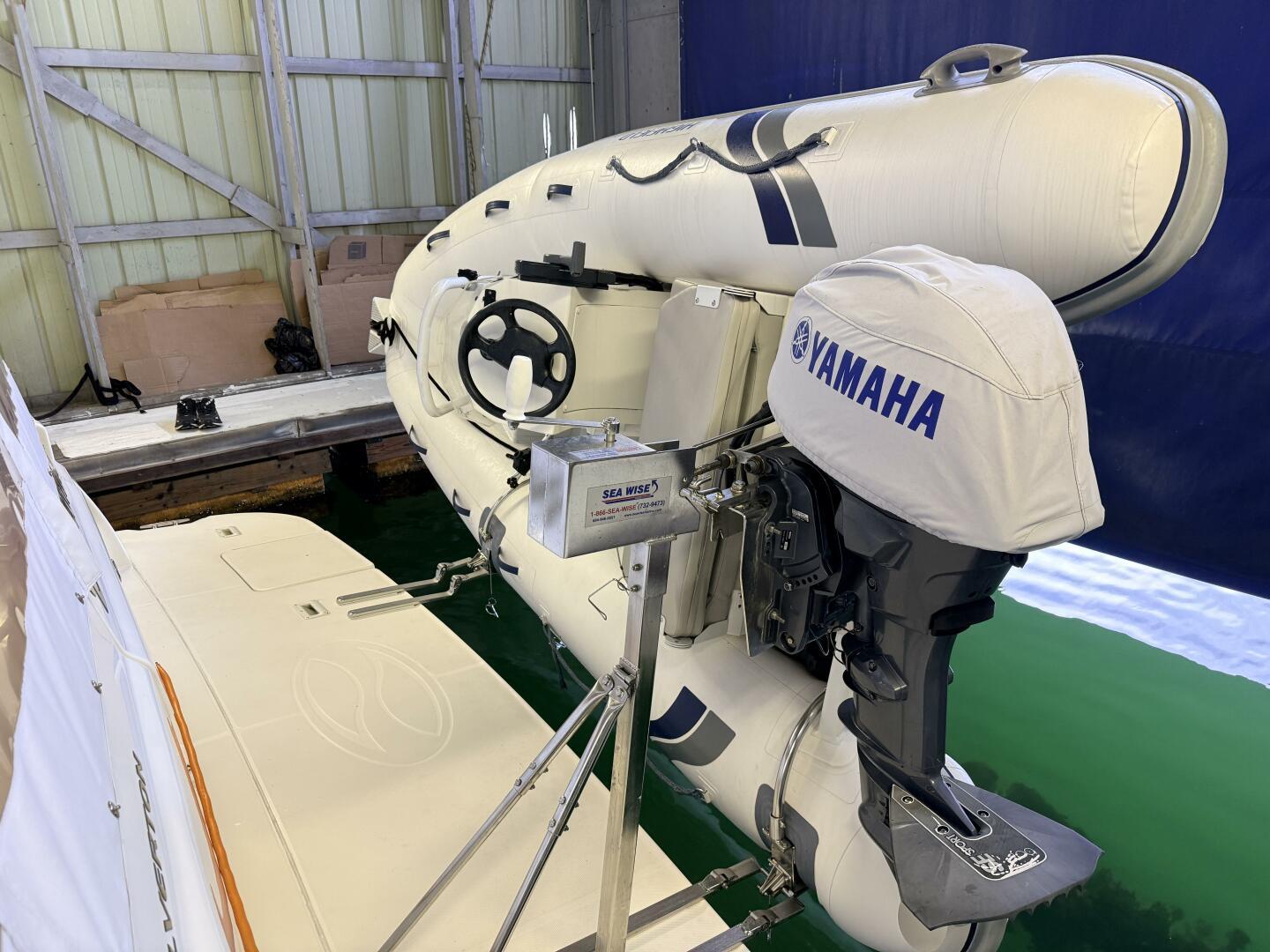 2016 Highfield center console dinghy with 25 hp Yamaha on SeaWise davits and a trailer