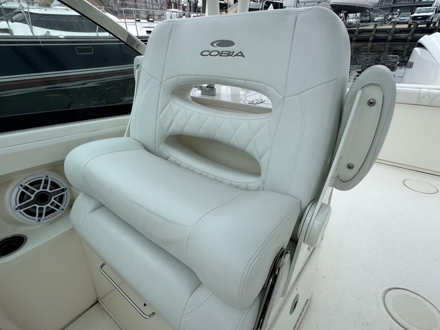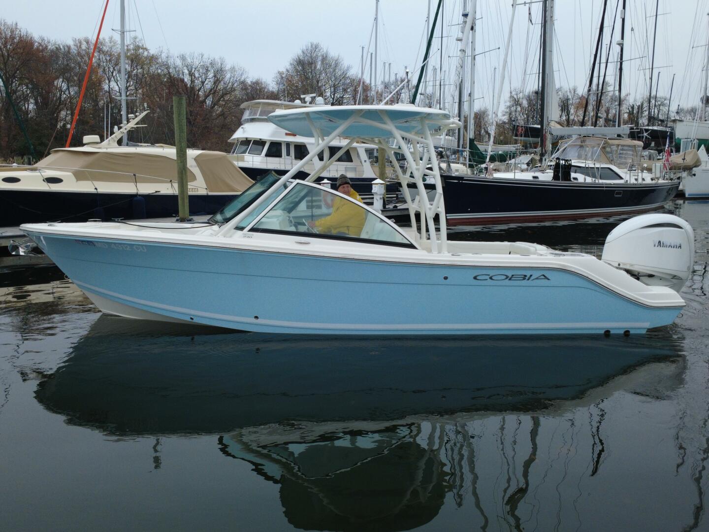 This 2024 Cobia 240 DC is the ideal do-everything dual console! A comfortable family boat that’s also seriously fishable. The owner-preferred blue hull with matching underside hardtop gelcoat looks sharp against the crisp white interior and the white painted Yamaha 300. With only 43 engine hours, current factory warranty plus extended engine coverage, and a long list of desirable options, this boat is ready to enjoy now with confidence. The 240 DC’s roomy cockpit, thoughtful seating (room for nine), hardtop, walk-down head, and large fuel capacity make it equally at home on day cruises, sandbar weekends, or offshore trips. Other features of this boat include: