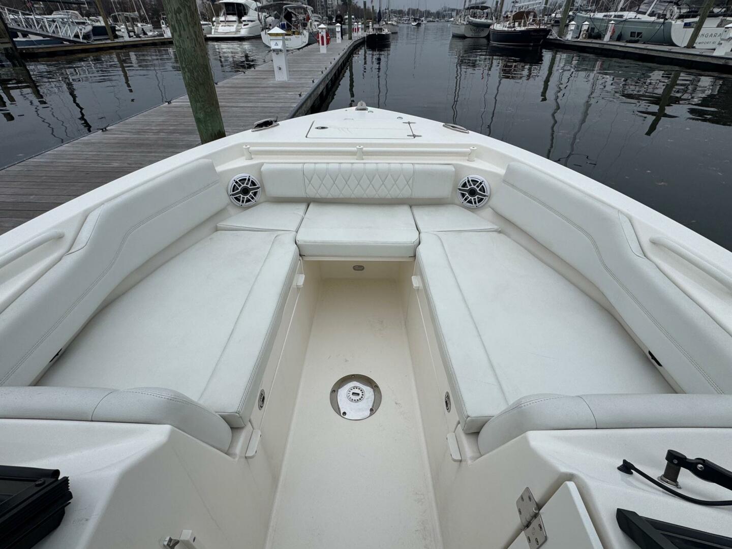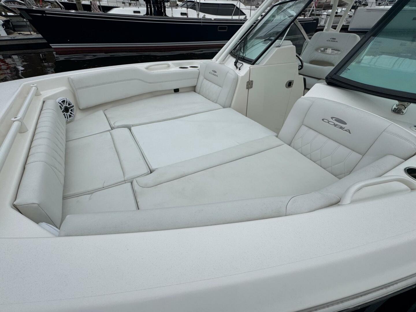 - Seating for up to nine passengers; convertible first-mate’s chaise lounge / multiple forward seating configurations