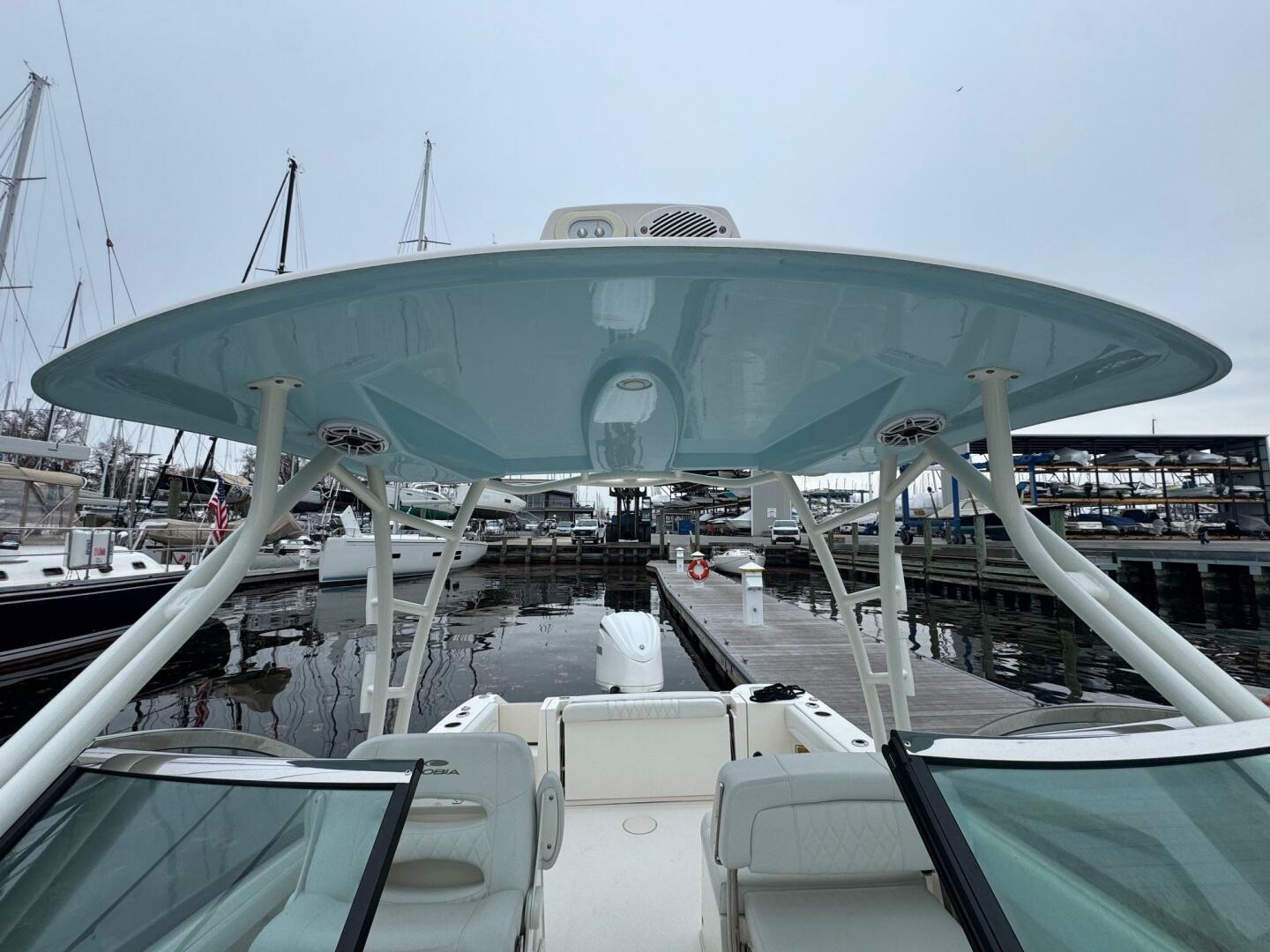 - Hardtop with underside gelcoat matched to hull blue (matching blue gelcoat underside of hardtop)