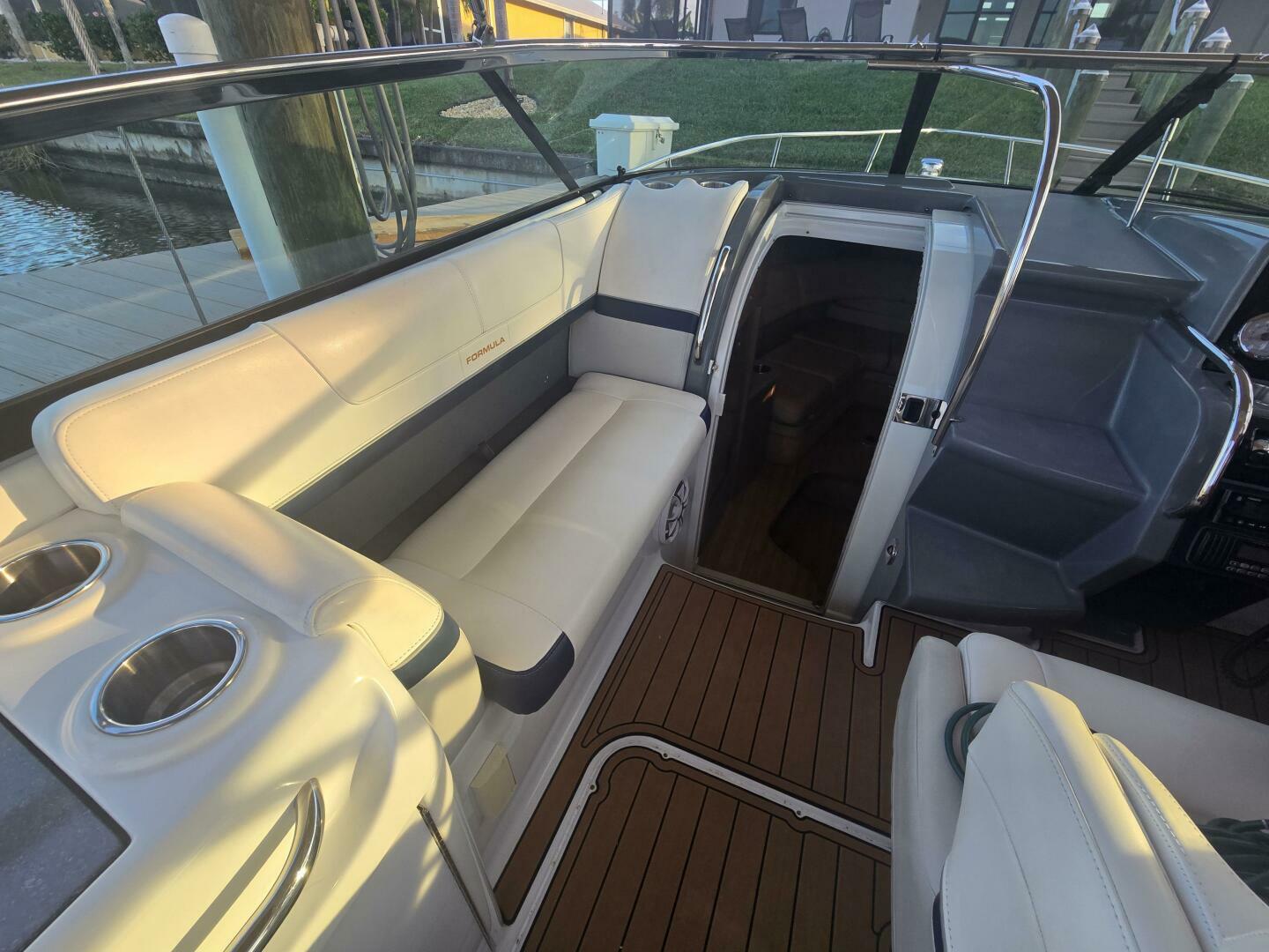 The cockpit layout is a standout feature of this boat. New boaters appreciate its open, social, and comfortable ambiance. Meanwhile, experienced boaters value the smart design, deep seating, and thoughtful storage options that Formula is known for. This setup effortlessly transforms a casual afternoon cruise into a lively gathering.