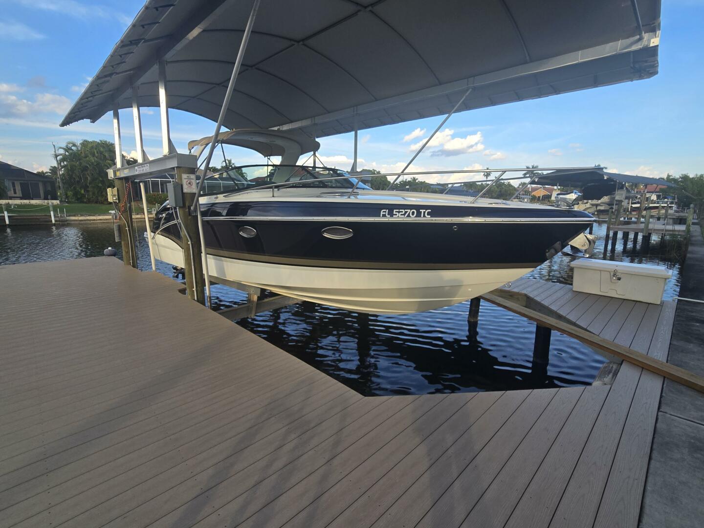 This boat is on a covered lift along with complete morring covers. This shine is like new.