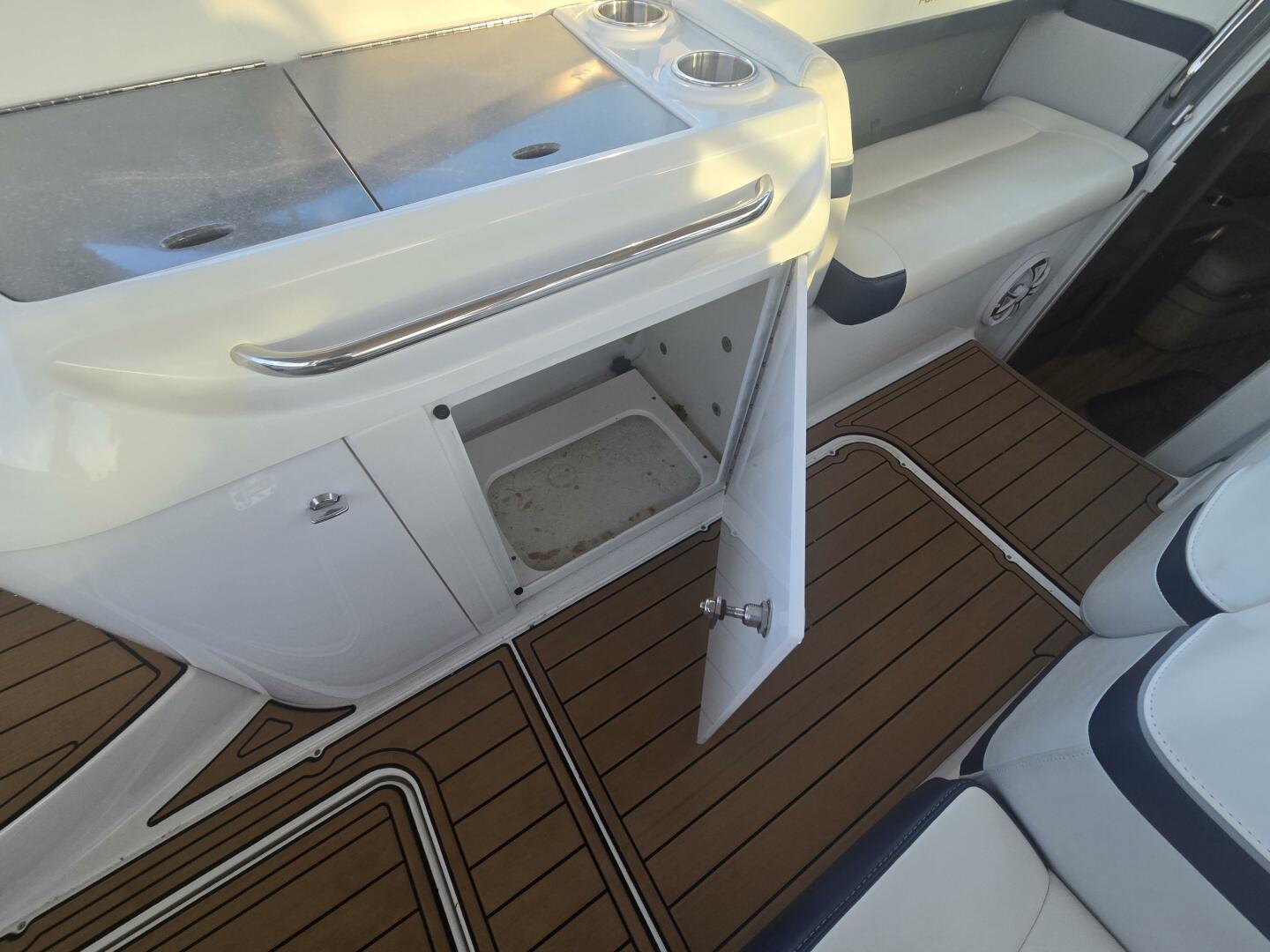 - Aft-facing sun lounge w/storage below — converts to full-length sunpad