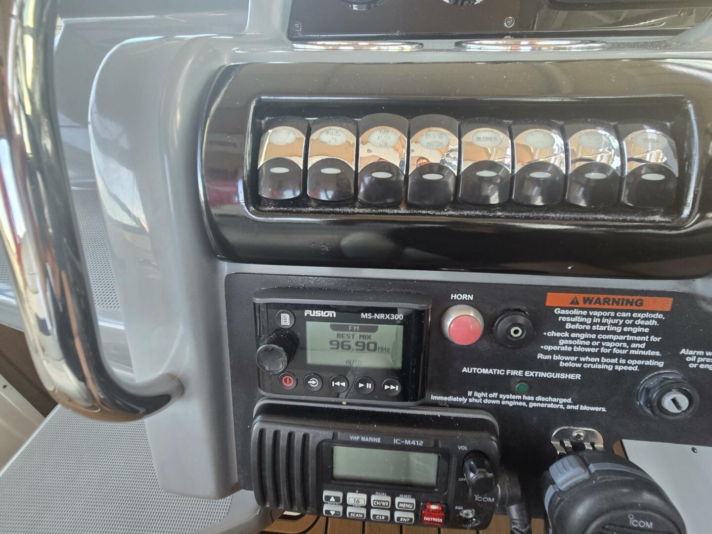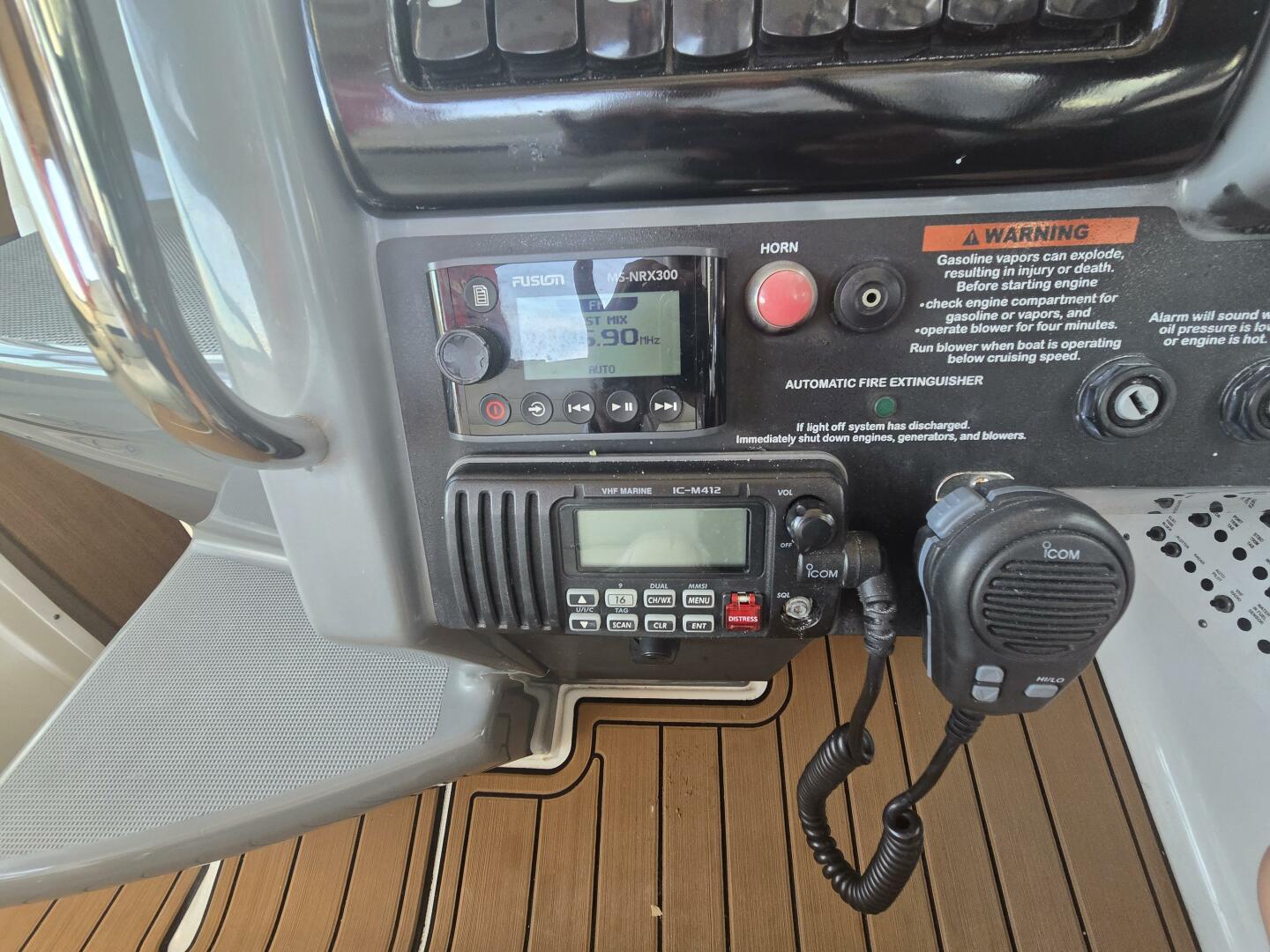 - Two transom-mounted 6 1/2" marine-grade stereo speakers w/polished stainless steel grilles
