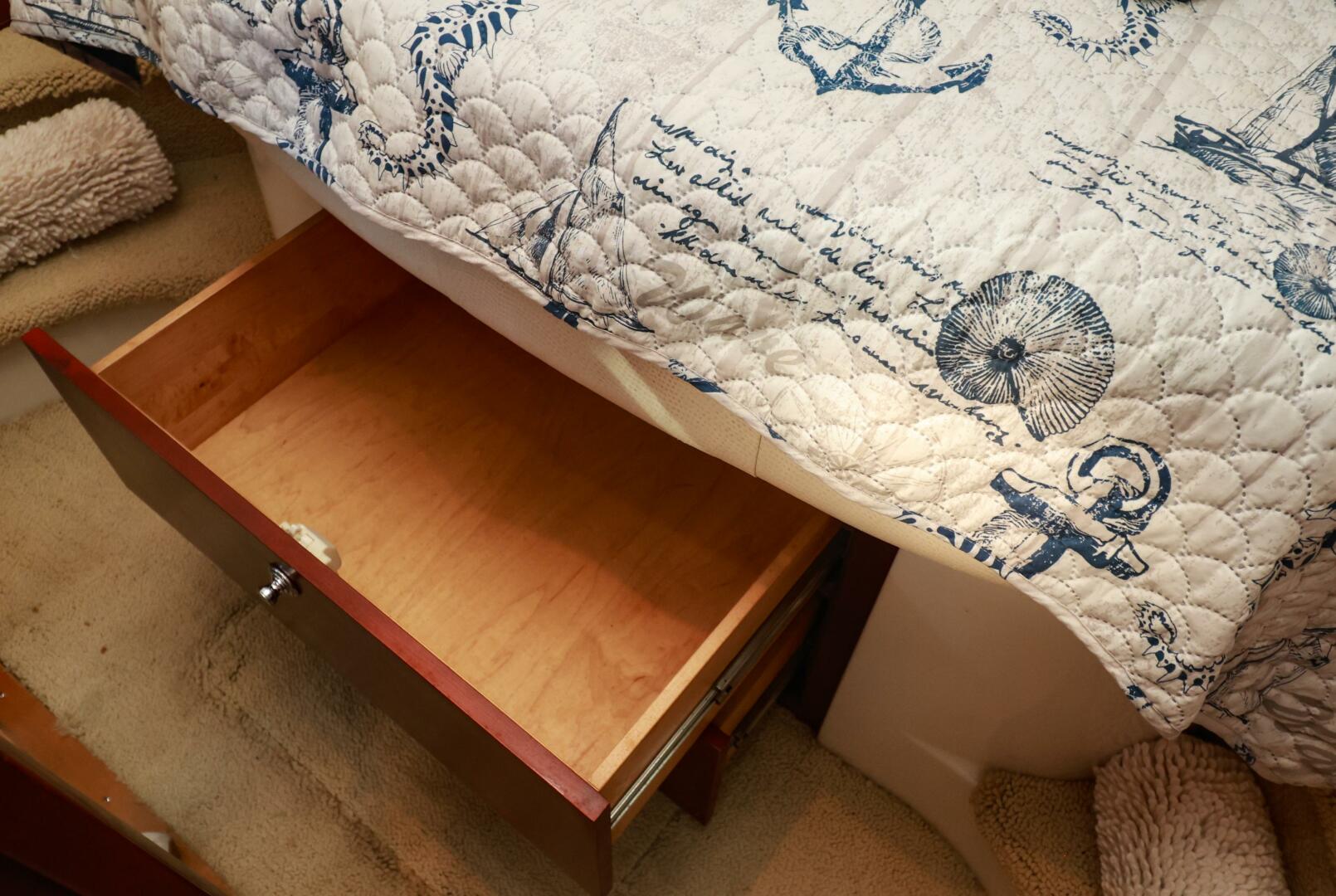 Below deck, you’ll find two inviting cabins and two well-designed heads, creating a spacious, private, and comfortable environment for weekend getaways or hosting friends.