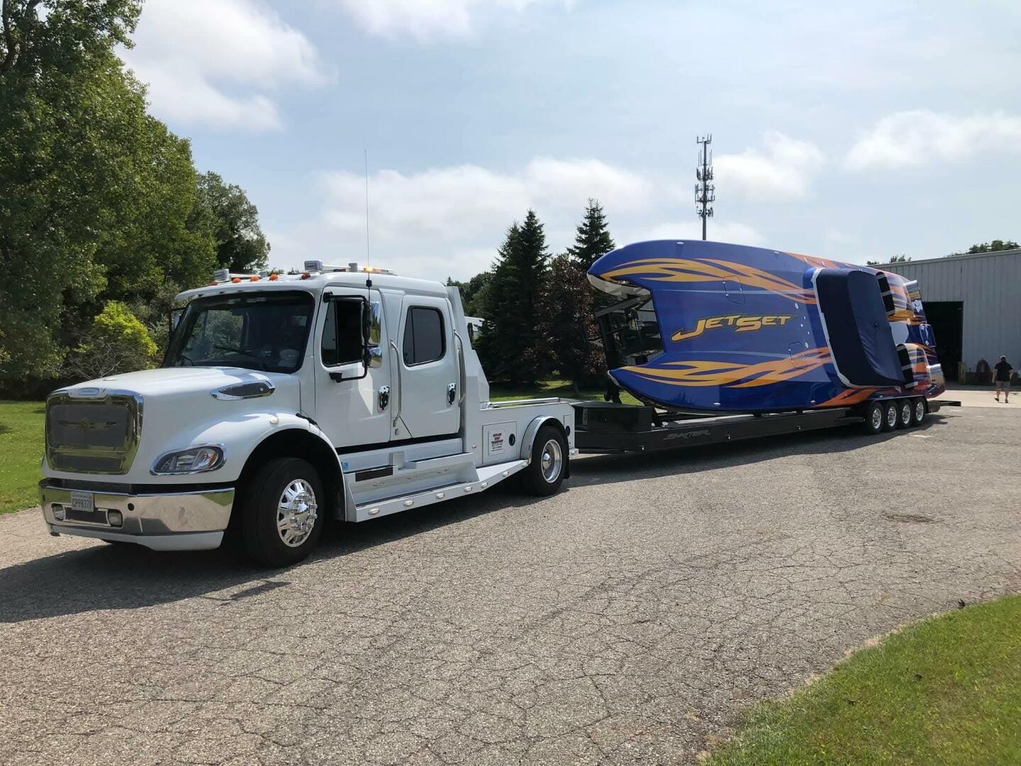 FOR SALE ! 2020 50' Skater w twin T-55 turbines ( 3250 hp each w dyno sheets) mated to full custom stainless ASD-11 Arneson surface drives. Like NEW with single digit hours for test time only on a custom hydraulic tilt Skater quad axle, full air-ride trailer. SERIOUS INQUIRIES ONLY PLEASE located in NJ.