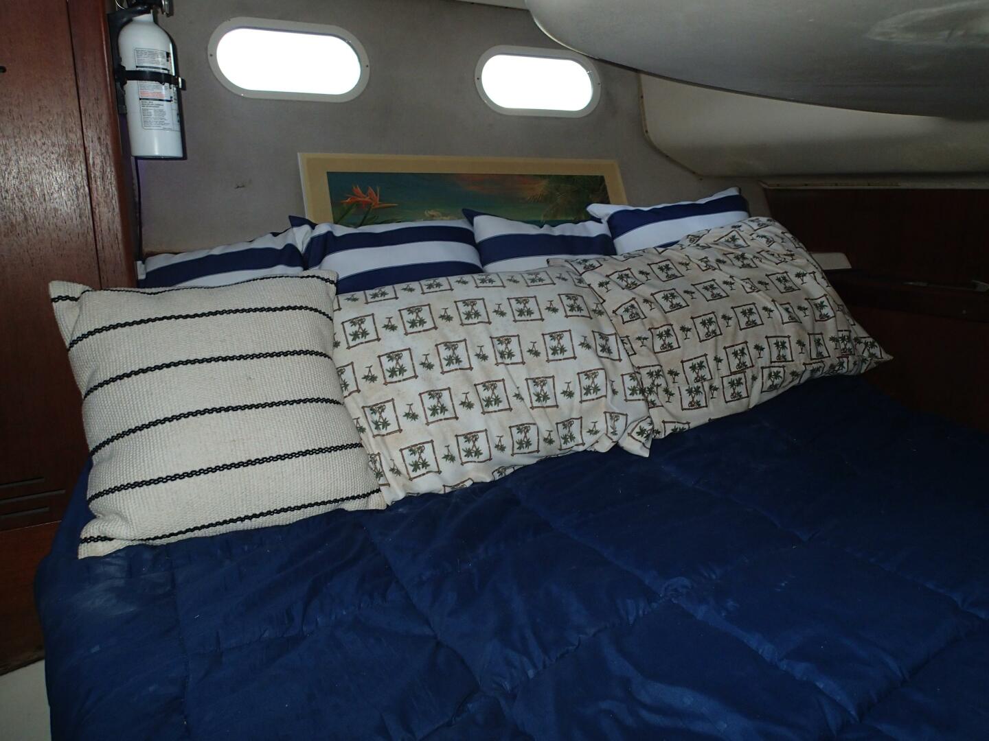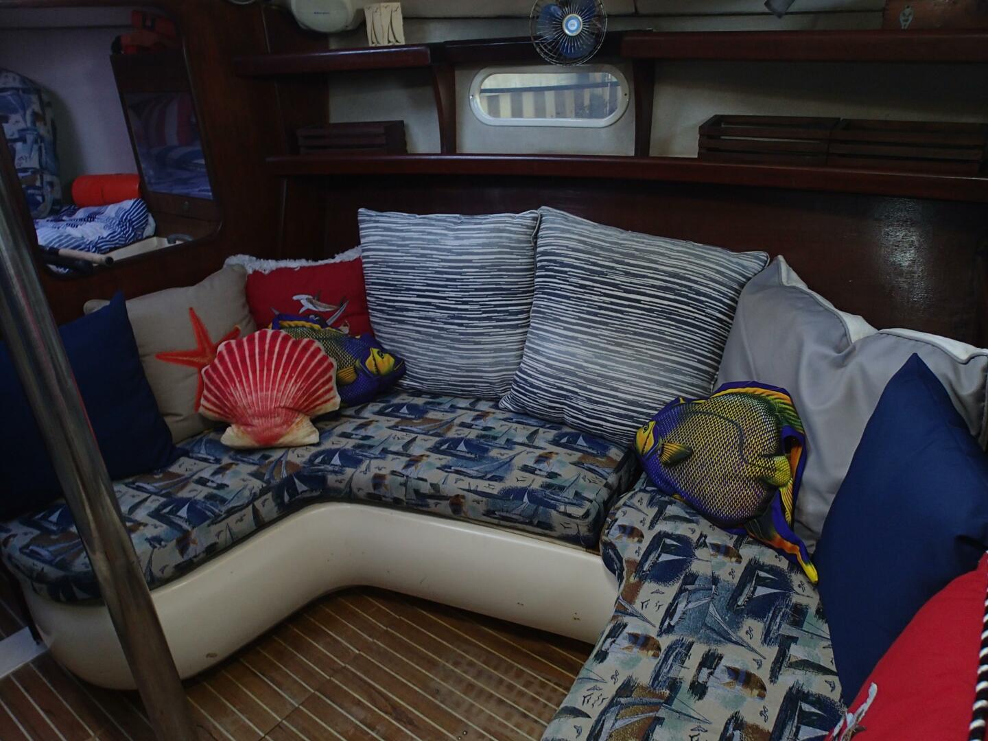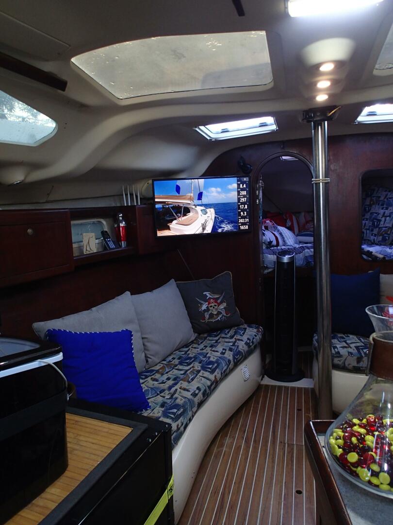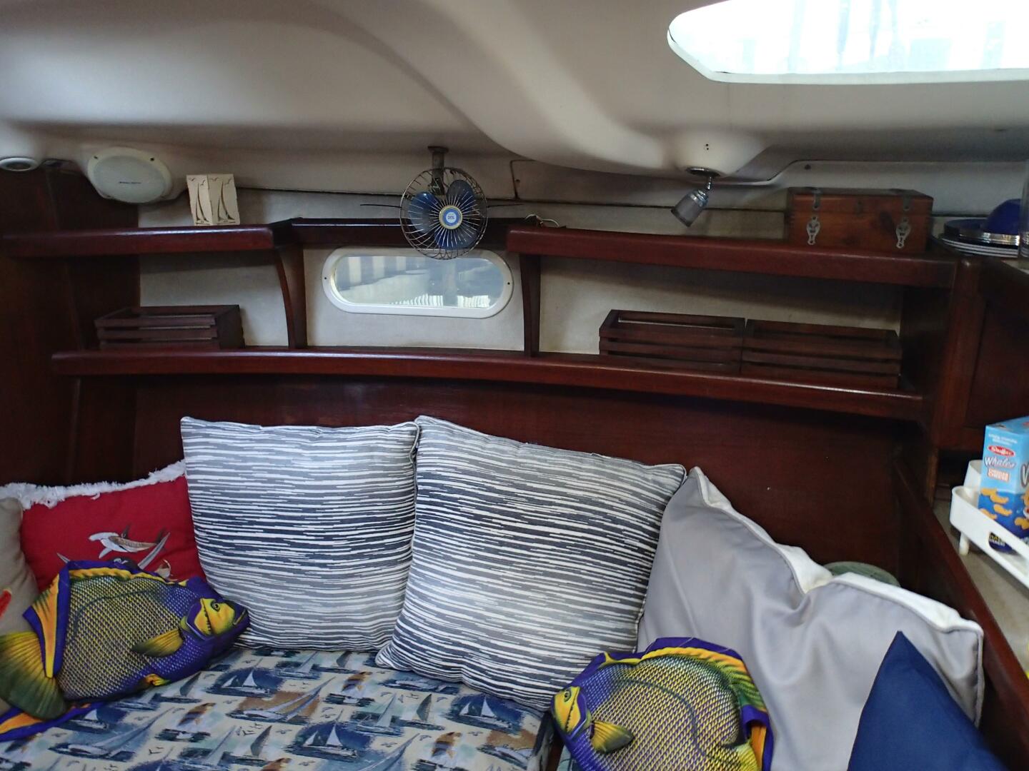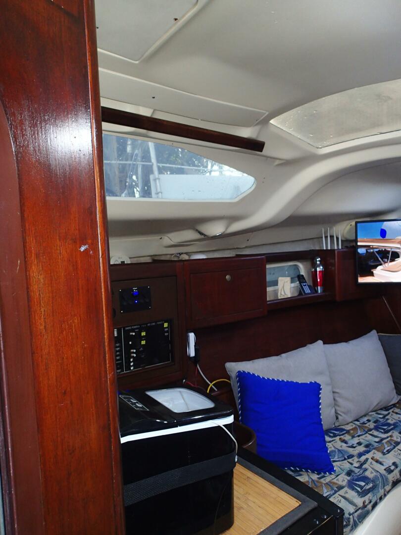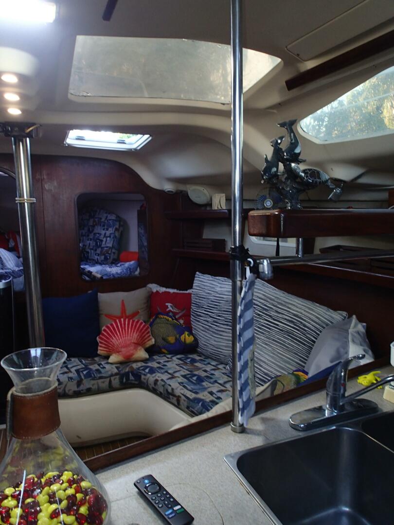 - Spacious, airy layout: The interior offers two staterooms (forward v-berth and aft), giving you and perhaps a partner or guests private sleeping quarters. There’s also a salon/dining area that converts to additional berths if needed.
