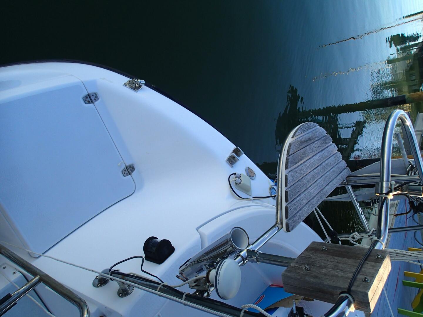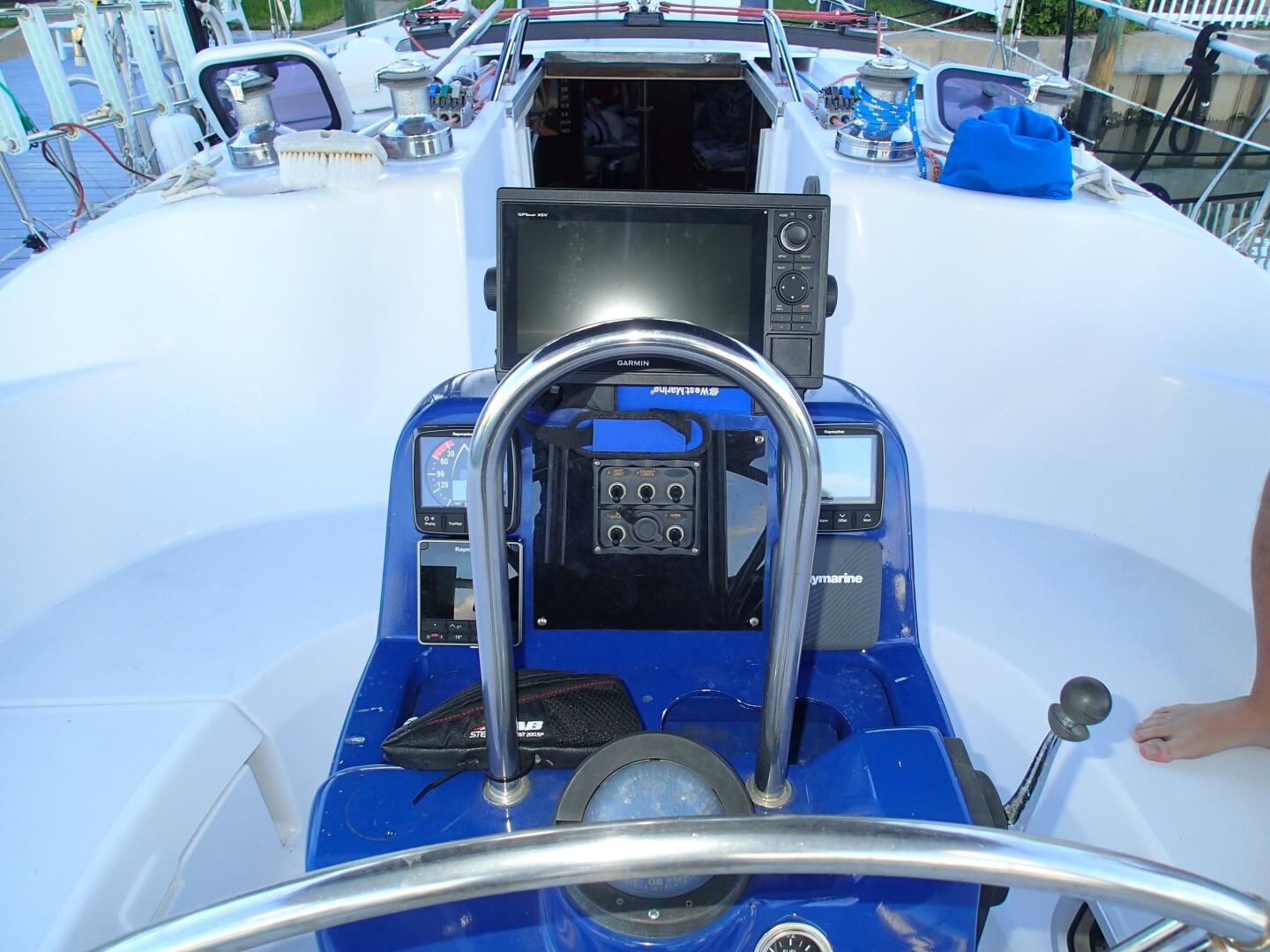 - Comfortable cockpit & ease of handling: The cockpit is roomy and user-friendly: a wheel steering station, walk-through transom with swim platform, and all sail controls led aft to the cockpit enabling you to steer or adjust sails without constantly going forward. Great for solo sailing, or sailing with just you and a companion.