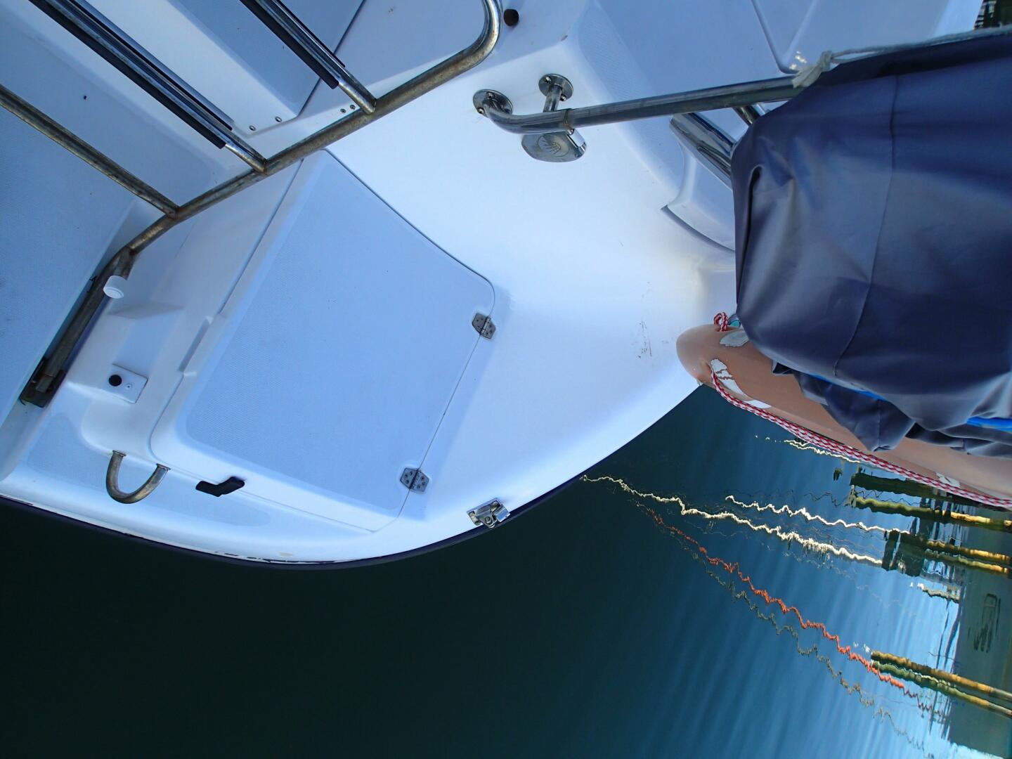 Picture this: it’s early morning, the sky is soft and golden as the boat rocks gently in her slip. You step onto deck, take a deep breath of sea-air mixed with Florida salt — that hint of freedom. The cockpit, with its walk-through stern, makes boarding easy. The deck layout feels intuitive, safe, and inviting.