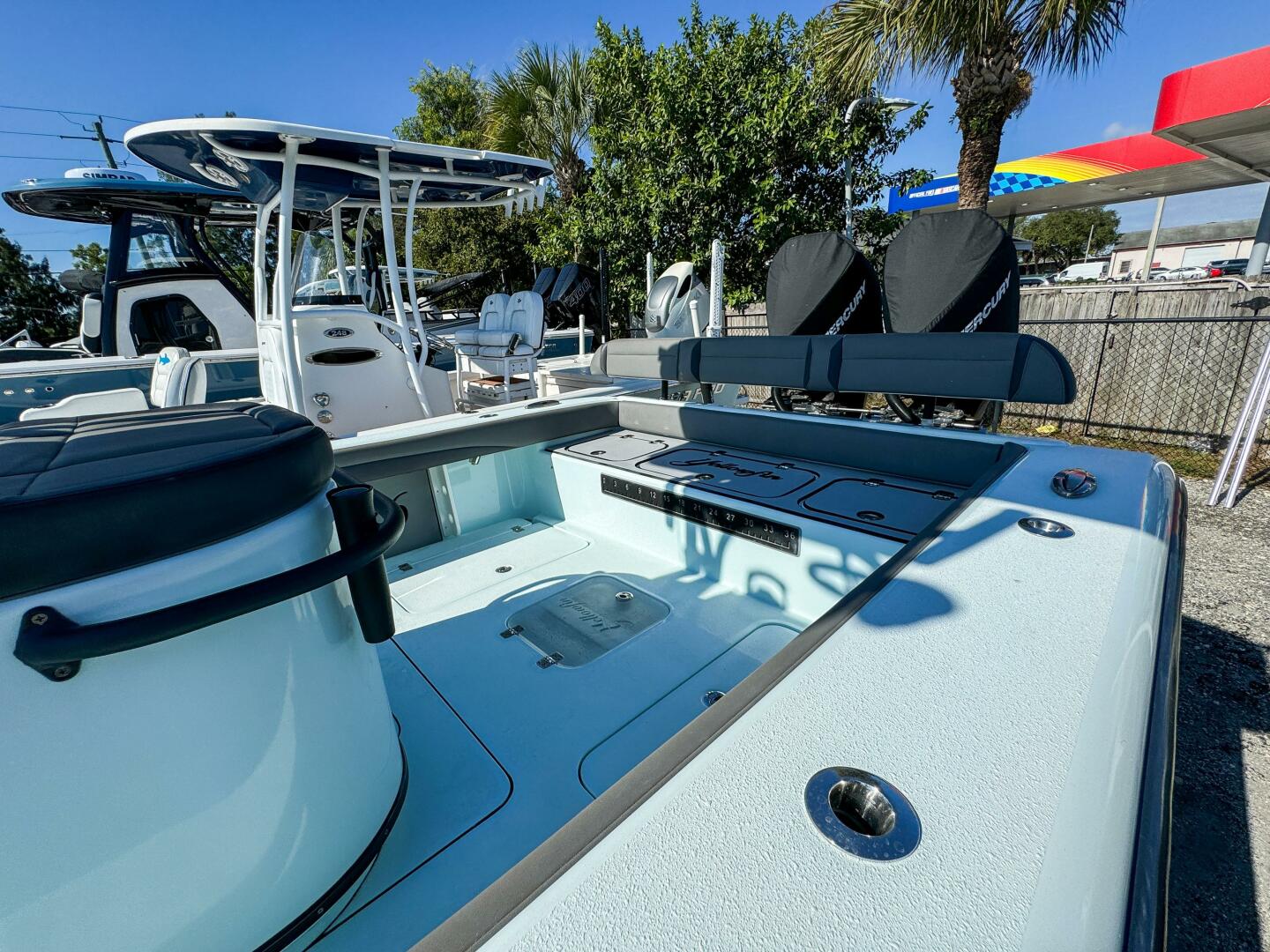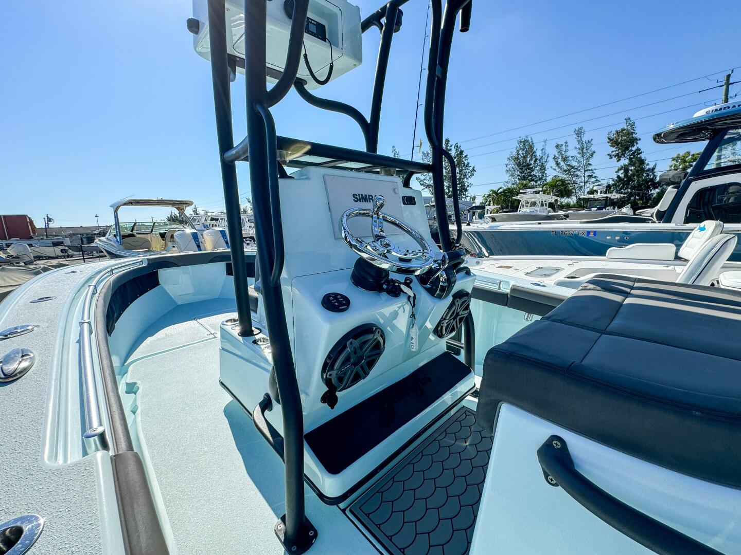 This 2019 model comes repowered with 2023 Mercury outboards, providing modern performance, reliability, and efficiency. It’s equipped with a second station for enhanced visibility, a Simrad navigation system, premium JL Audio, and multiple livewells for serious fishing capability.