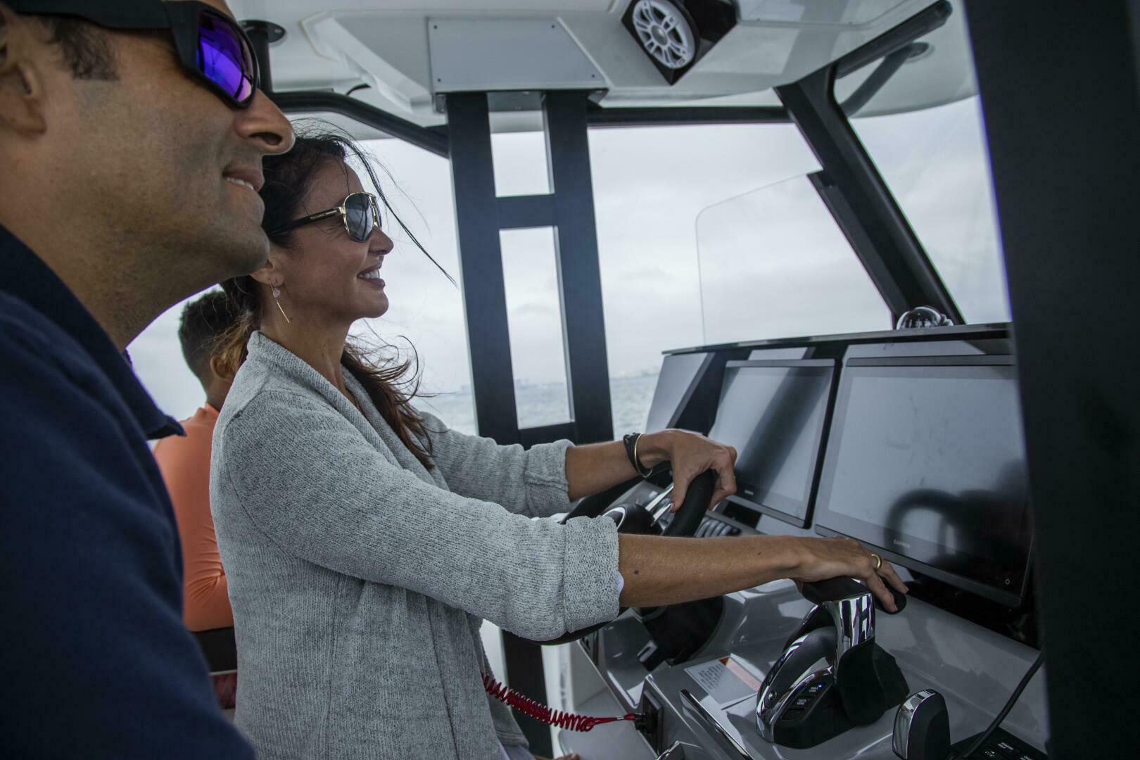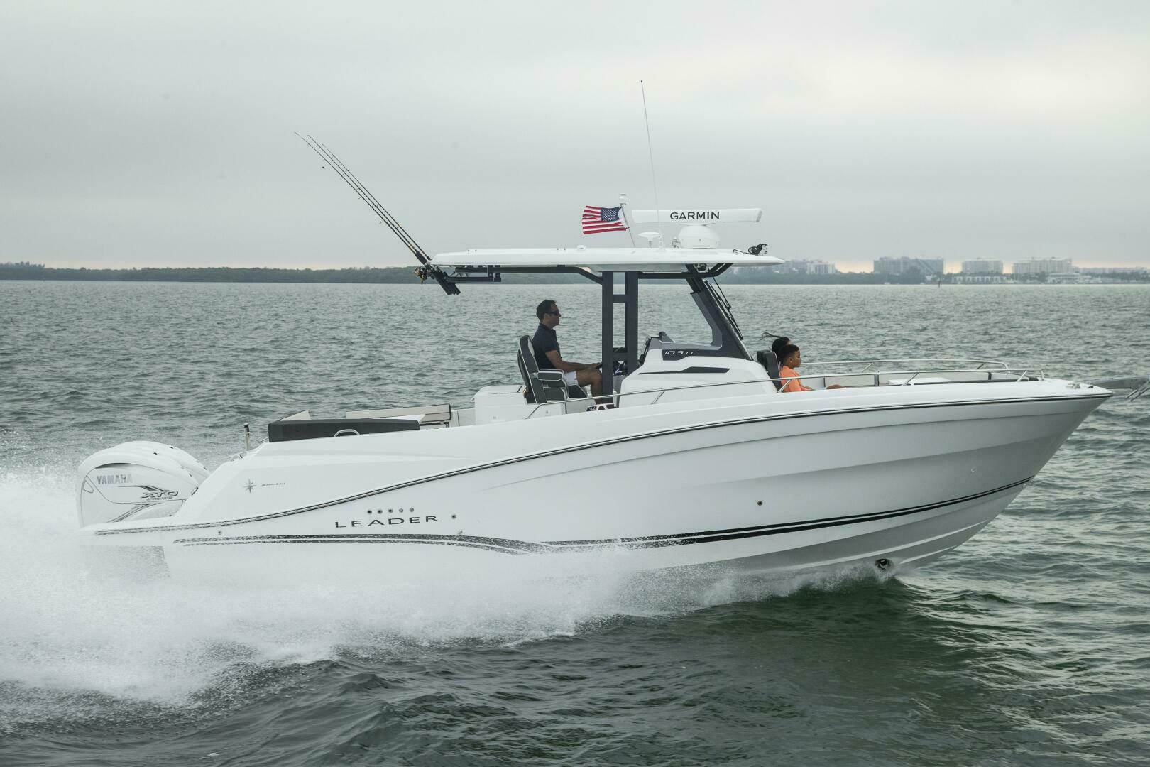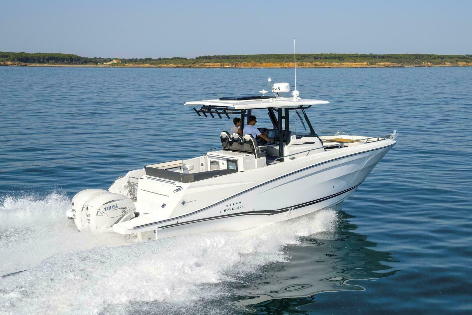 The 2024 Jeanneau Leader 10.5 CC is a 35-foot center console that seamlessly blends luxury and performance, featuring twin 450 HP outboard engines, a spacious cockpit with a summer kitchen and integrated swim ladder.