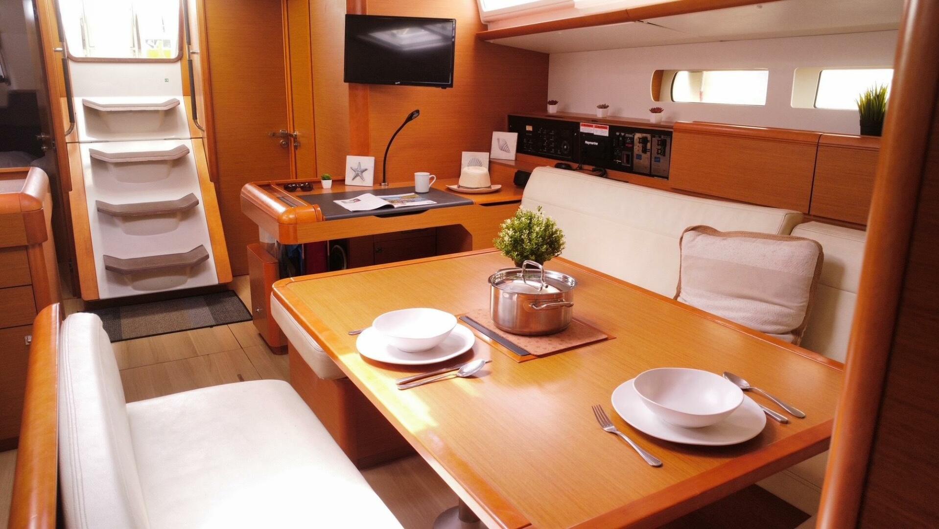 - Complete set of Raymarine instruments with RG2000 network (including chartplotter, depth, wind, hydraulic auto pilot, VHF ICOM with DSC radio, TV and stereo with speakers in cabin and cockpit)