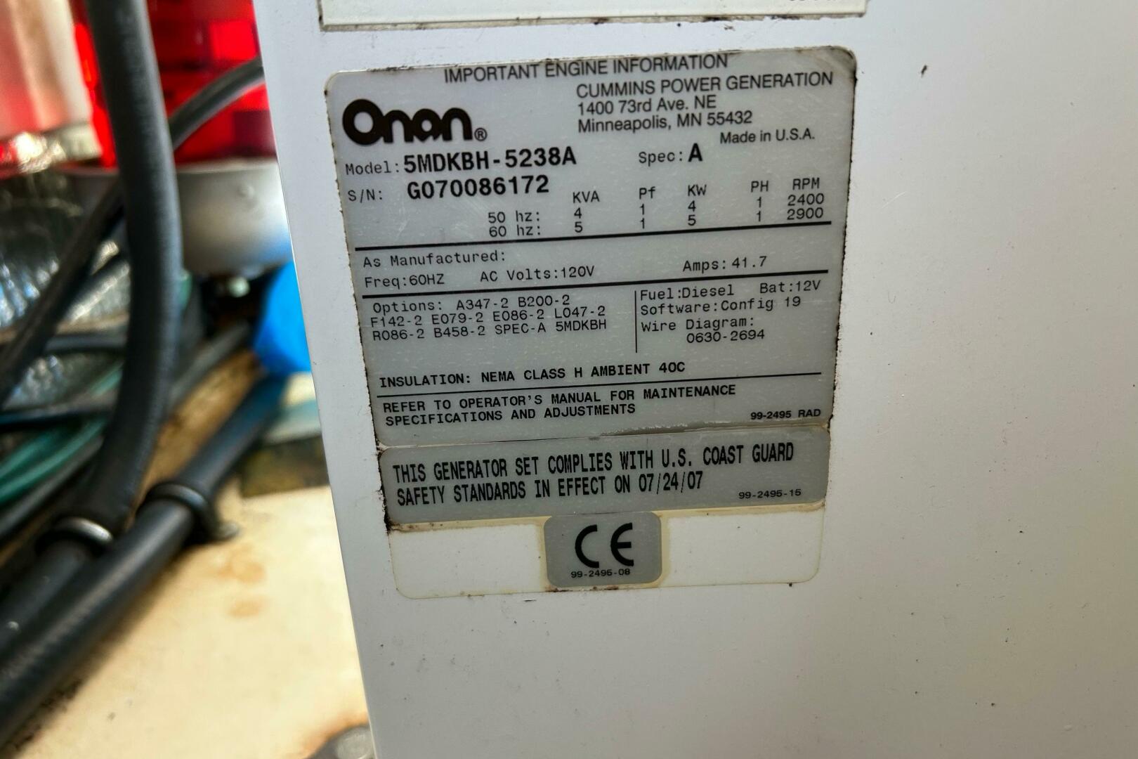 - Cummins/Onan 5KW diesel generator - Less than 40 hours!