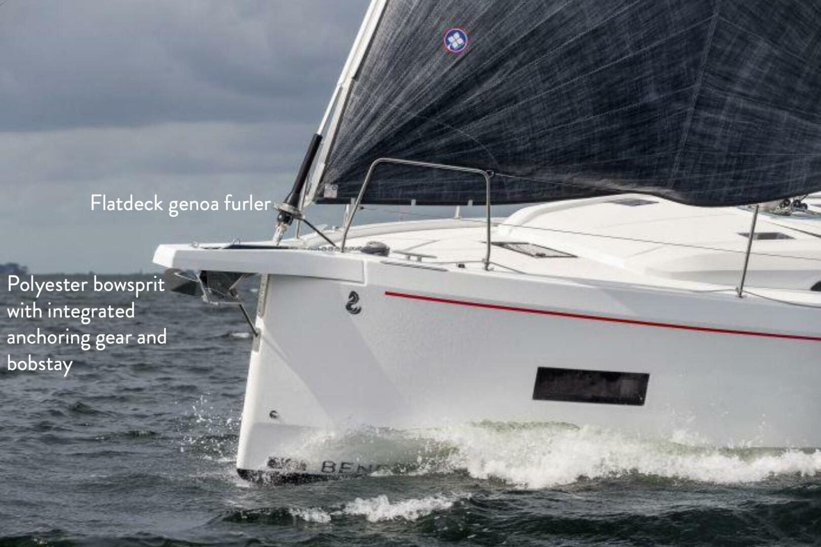 - Polyester bowsprit with integrated anchoring gear and bobstay (for Code 0 and asymmetric spinnaker)