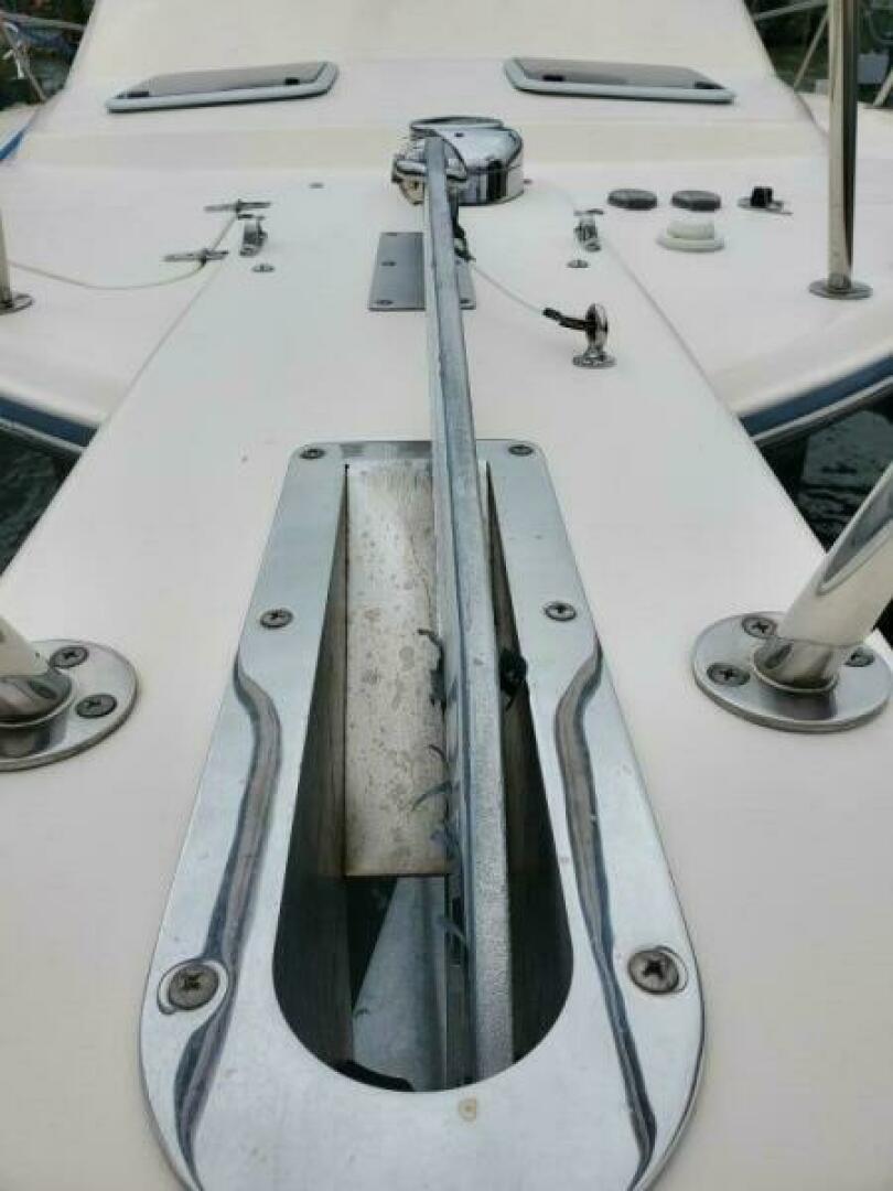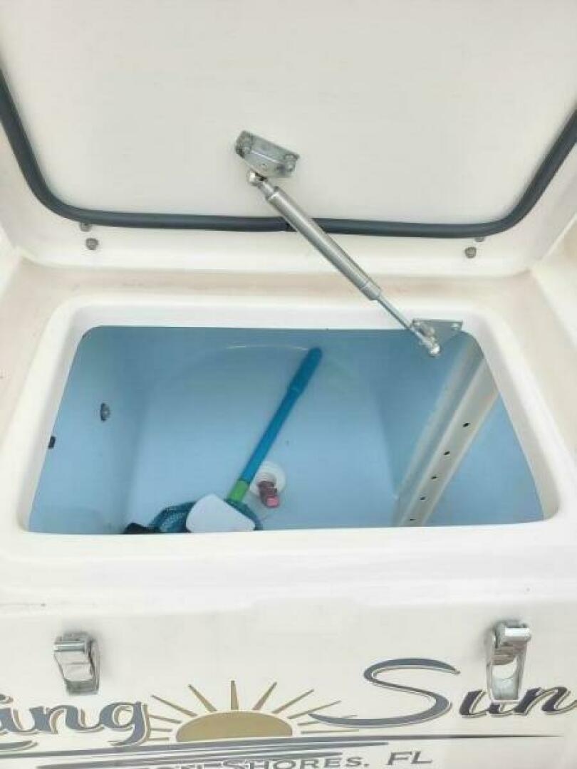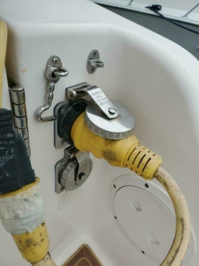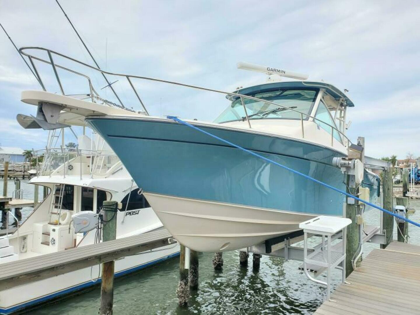 Isinglass cockpit enclosure with updated zippers and maintenance, side dive door, stainless telescoping swim ladder, fresh and saltwater washdowns, synthetic teak cockpit flooring, 50 AMP shore power, new trim tab system, new hull side paint, pin stripe logos and vent, stainless telescoping aft sun shade etc. Factory flywheel updates have been completed. Recent engine service on 9/25.