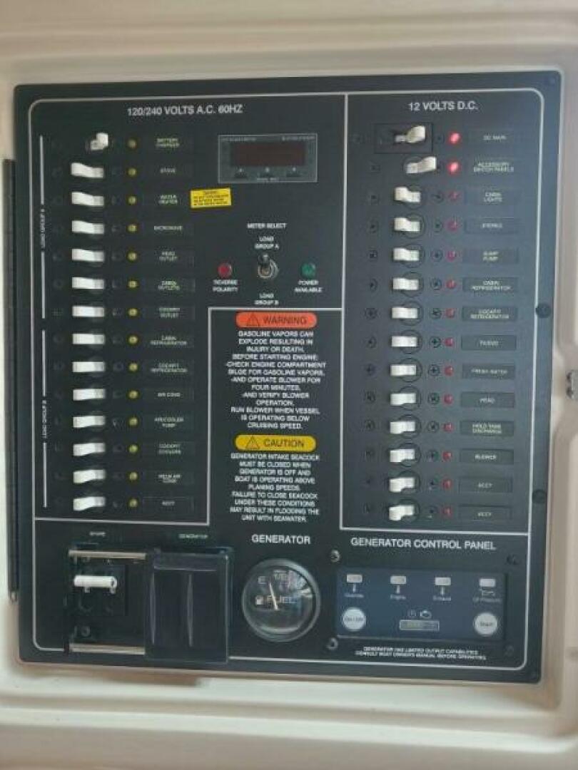 Also comes equipped with a low hour Panda diesel generator, air conditioning, bow thruster, GPS anchor, twin Garmin GPS map XSV touchscreen navigation, open array Garmin radar, Garmin Autopilot, twin Garmin VHF radios, windlass, air conditioned helm, 3 refrigerators, flat screen TV, stove, microwave, hot water heater, underwater lights, cockpit sink, refrigerated fish box with freezing capability,
