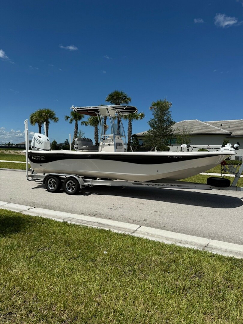 2024 Carolina Skiff 25 LS powered by Suzuki 200. Loaded with 9” Lowrance GPS, Minn Kota 80 lb i-Pilot, dual 10’ Power Poles, Bluetooth stereo, dual-bank charger, Coast Guard kit & Wesco tandem trailer. Turnkey! Jeff Borus 561-262-7942
