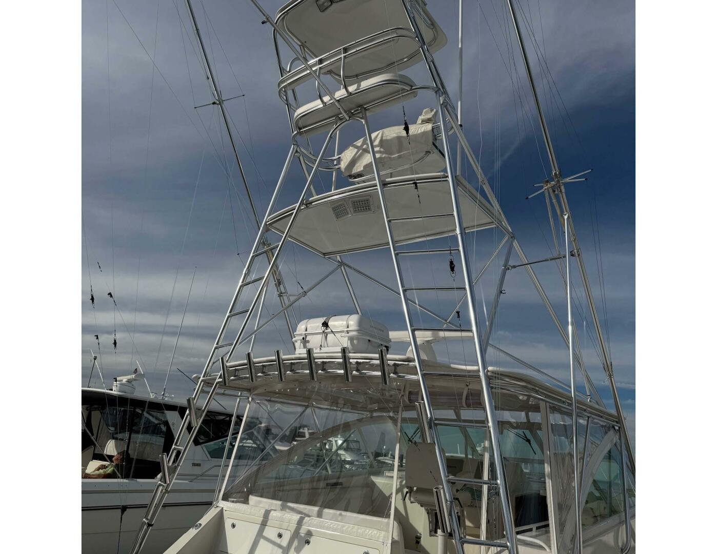 - Custom J&J Marine Tuna Tower with Molded Platforms and Rod Storage at Helm