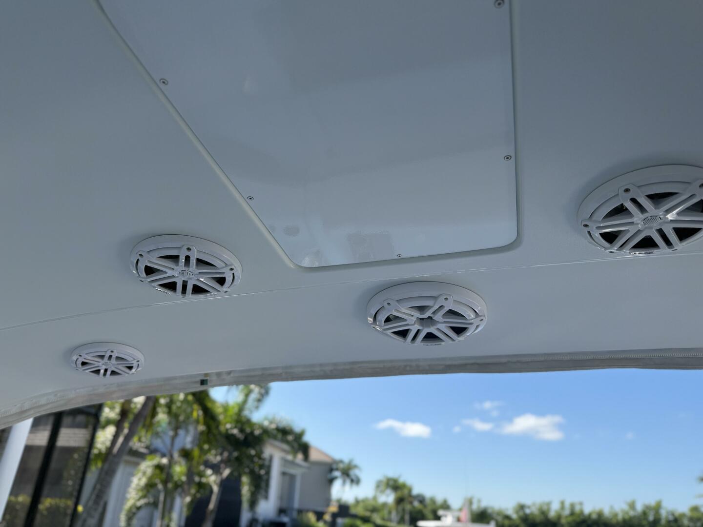 - Multiple stereo zones with helm, cockpit, and transom controls