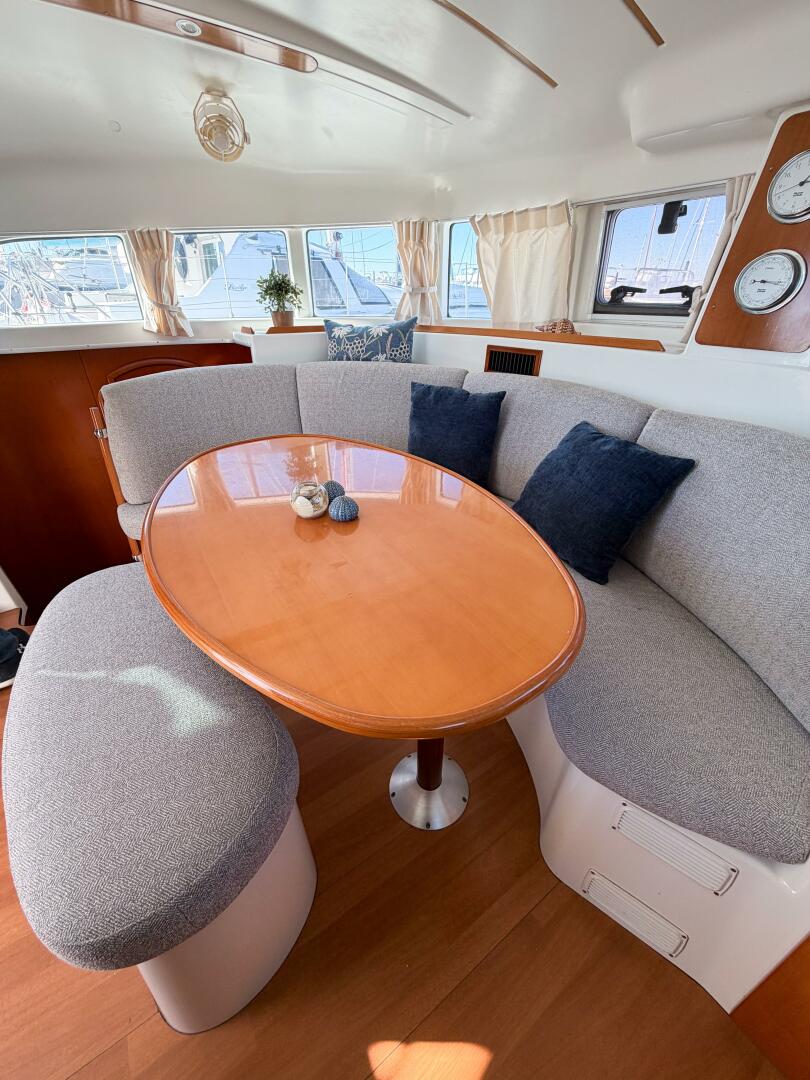 Big-Boat Feel in a Manageable Package Step aboard and you’re immediately struck by how open and inviting this boat feels. The salon and cockpit are on one level, creating a seamless social space ideal for dockside evenings or relaxed anchorages. Large windows flood the interior with natural light.