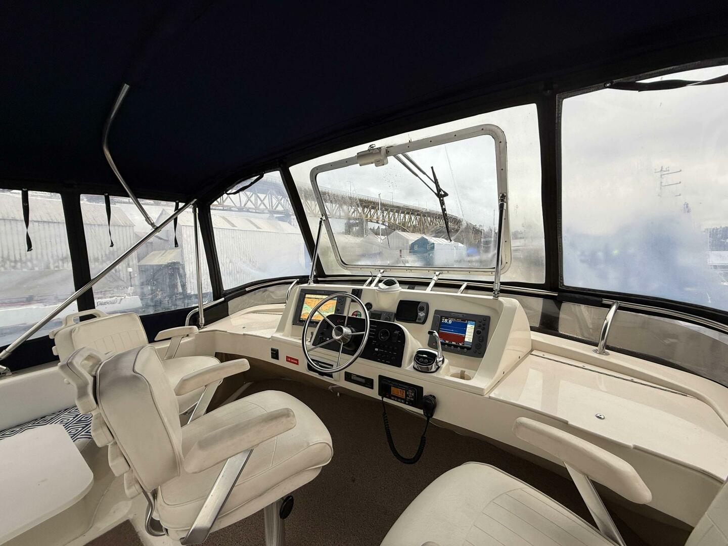 - Fully enclosed flybridge (with clear-view windshield & wiper)