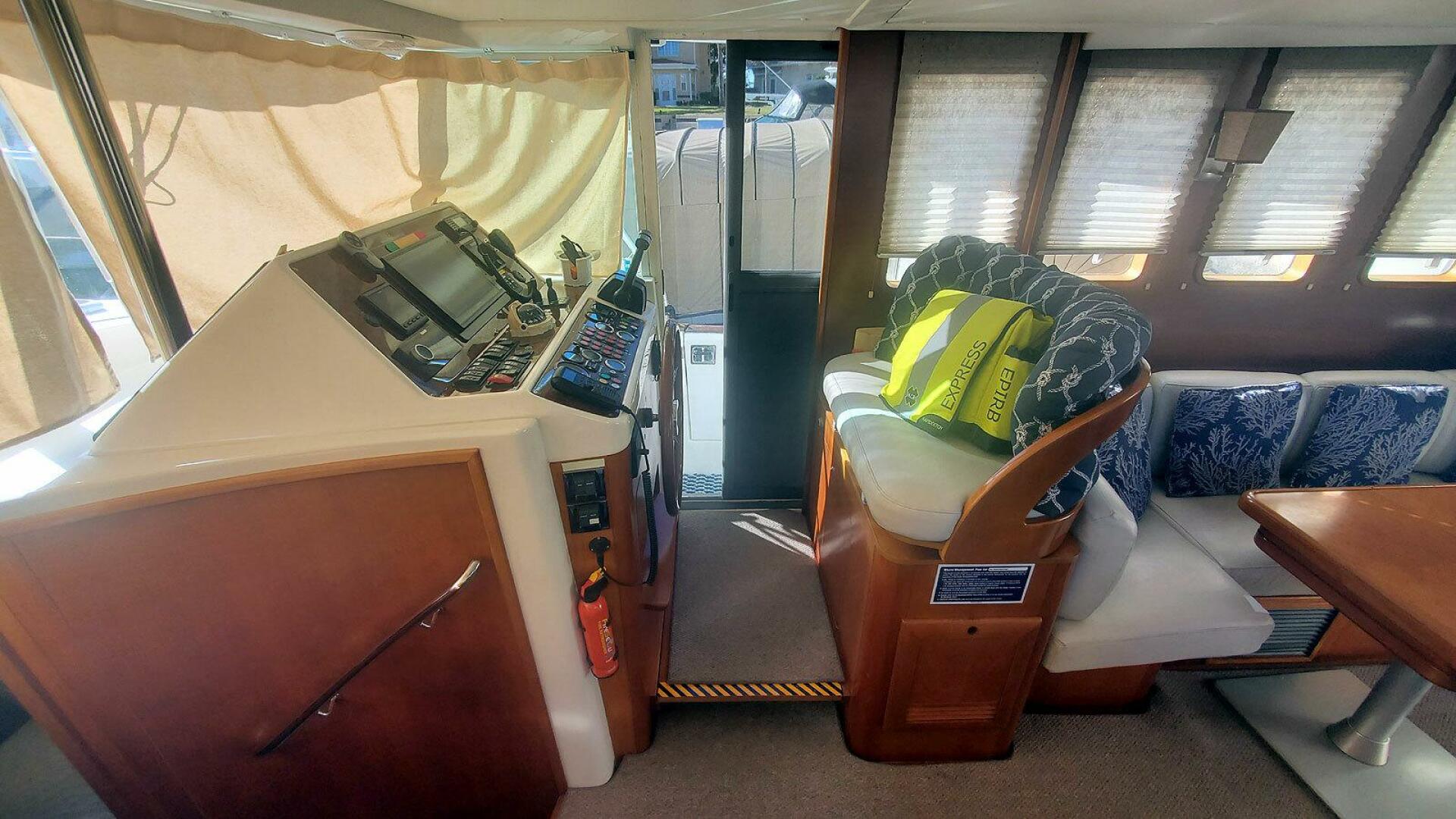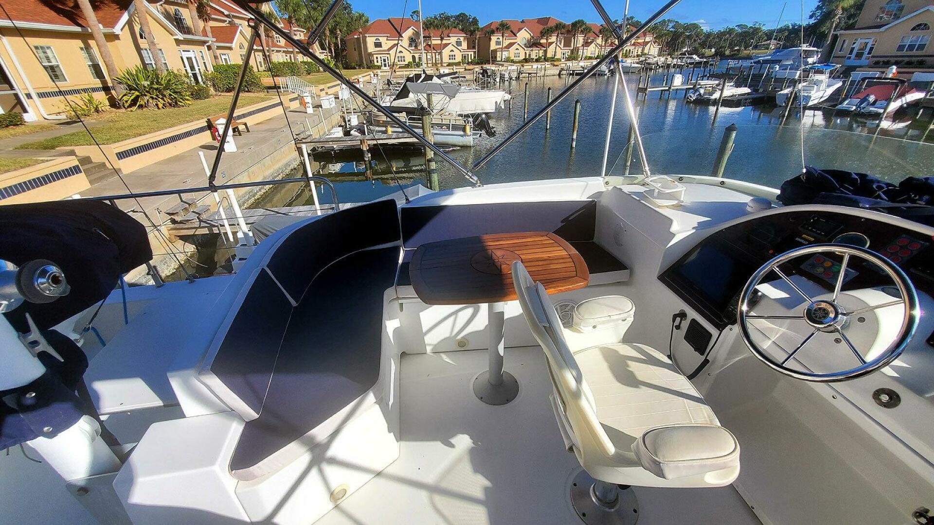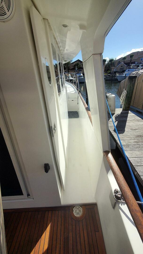 - Non-skid decks on the bow, flybridge, and side walkways, with teak and holly decking in the cockpit