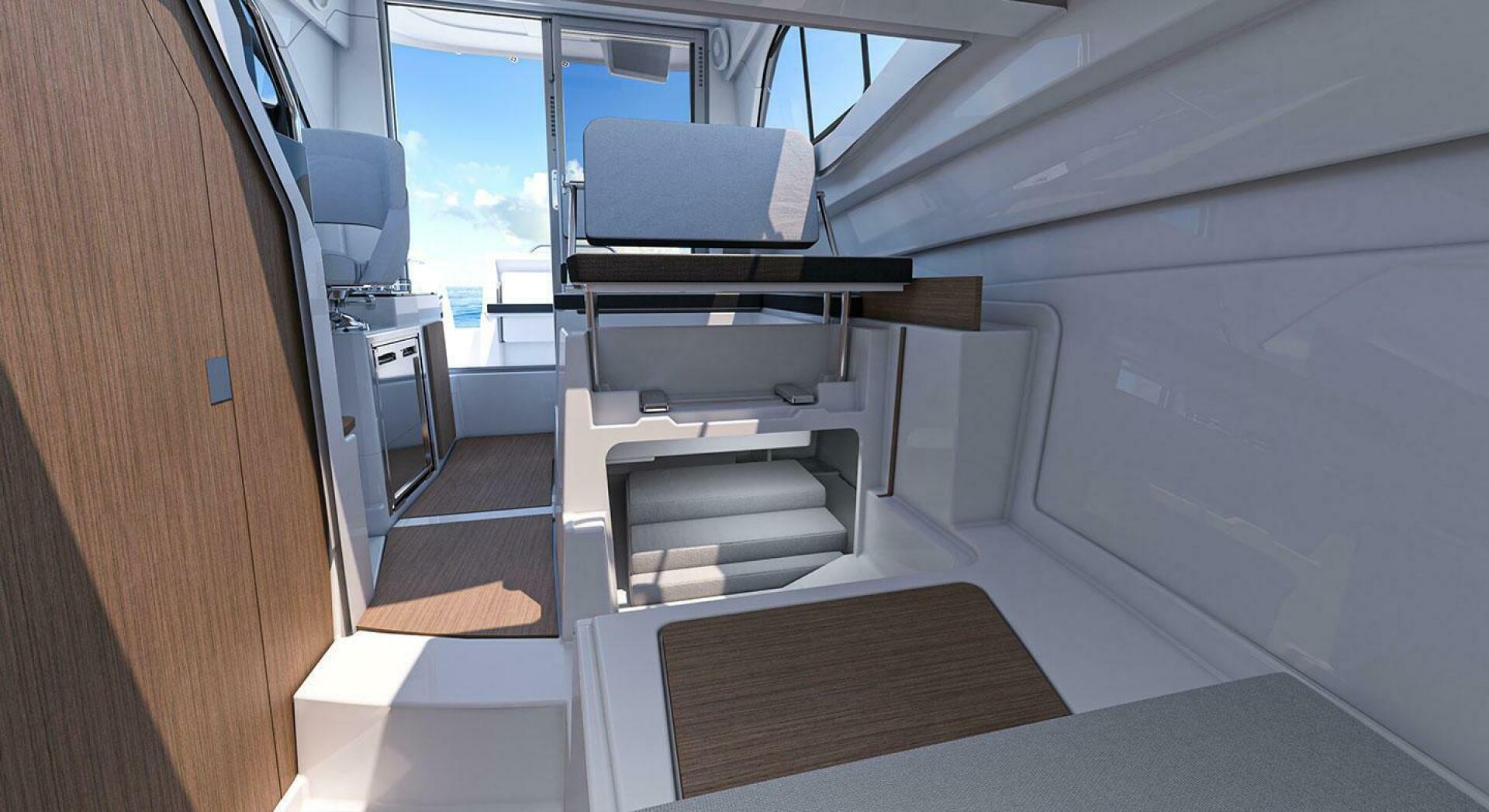 There is improved quality and comfort in the wheelhouse, thanks to a new integrated black helm console, an easy-to-operate copilot bench and it still provides outstanding visibility.