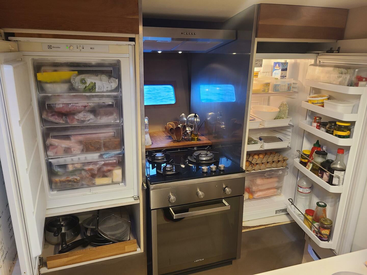Below decks, PEARL offers practical, comfortable living for extended voyages. Accommodation includes an owner’s double cabin aft with private en-suite, two generous single cabins, a large well-equipped galley with substantial refrigeration, and a large and comfortable saloon. A dedicated technical workshop and separate laundry room enhance her self-sufficiency, complemented by twin generators, a 200 L/h watermaker, Webasto diesel heating and the latest 2025 Simrad navigation suite. A full offshore safety package ensures peace of mind for any adventure.