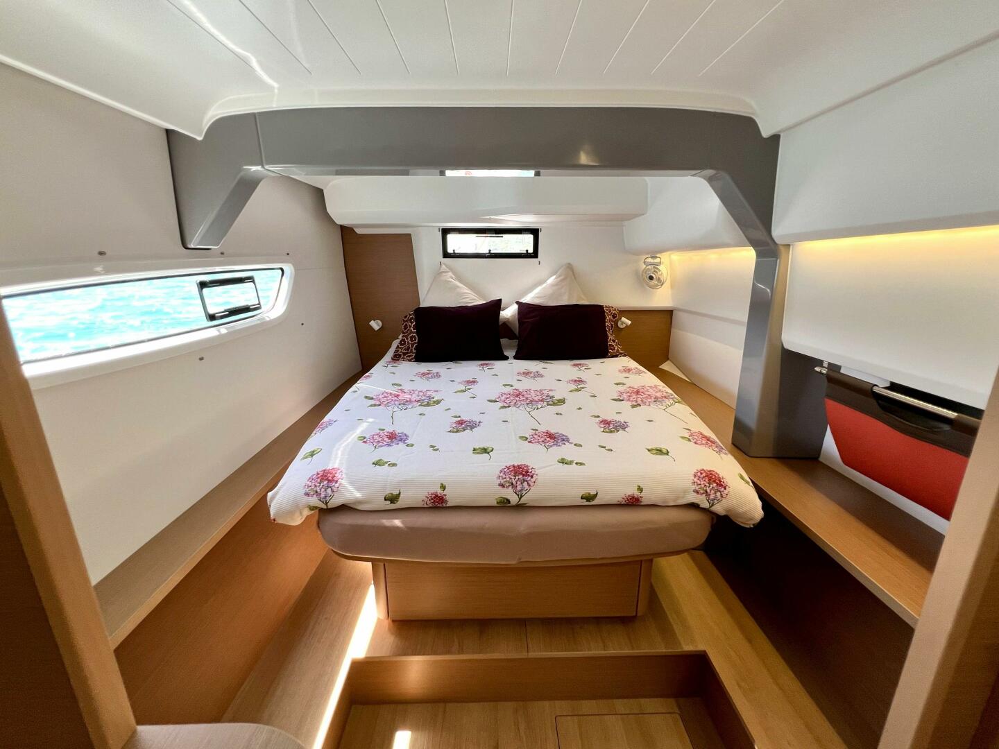 Kweli is set up for autonomous cruising with a large solar array, lithium batteries, watermaker, upgraded sails, and a good tender package. The 3‑cabin owner’s version layout, with its dedicated owner’s suite and central bathroom, has worked very well for extended cruising.