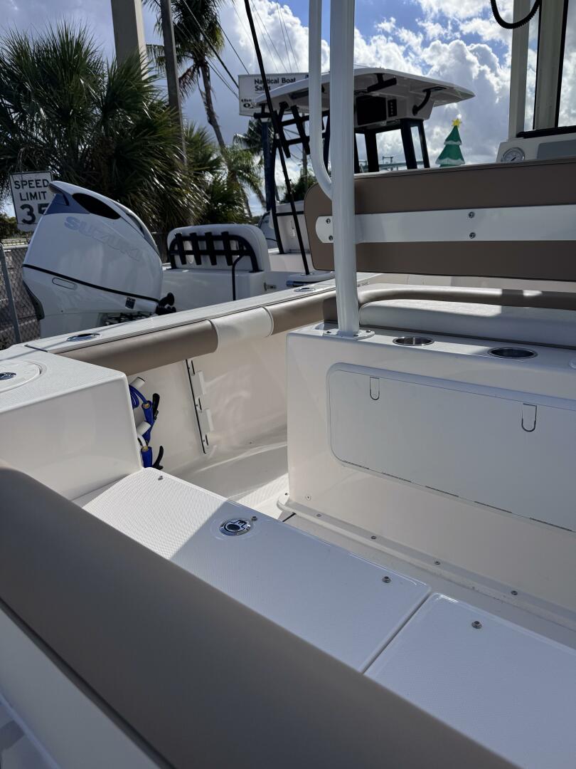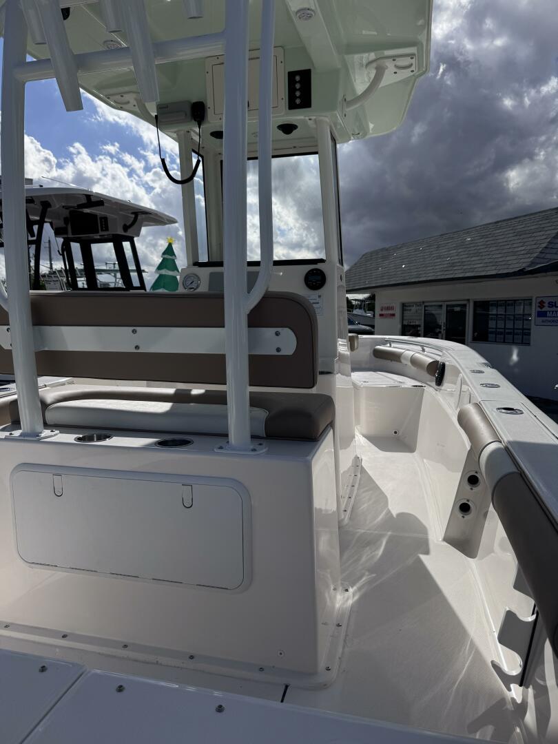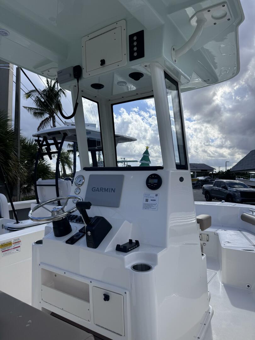 Fully optioned with a D-tubing hardtop, full windshield, integrated cooler, Garmin electronics, freshwater/raw water washdowns, and a plumbed head—this boat is turn-key and ready for immediate delivery.