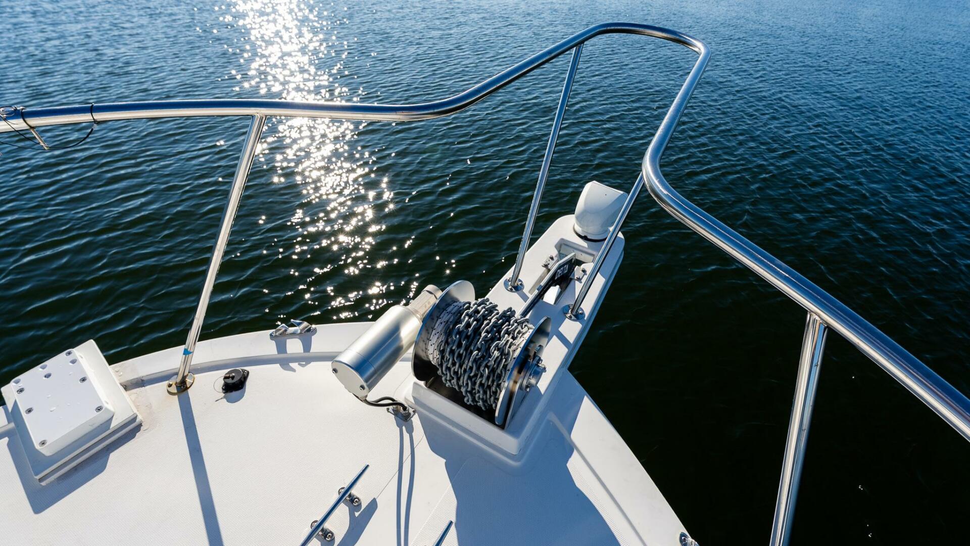 Equipped with a Lone Star drum winch (450’+ rode), Minn Kota Quest Instinct trolling motor with dedicated lithium power, Seakeeper stabilization, Starlink, an advanced Simrad electronics suite, and comprehensive safety systems, this 31 Fisherman stands out as one of the most impressively outfitted models ever built.