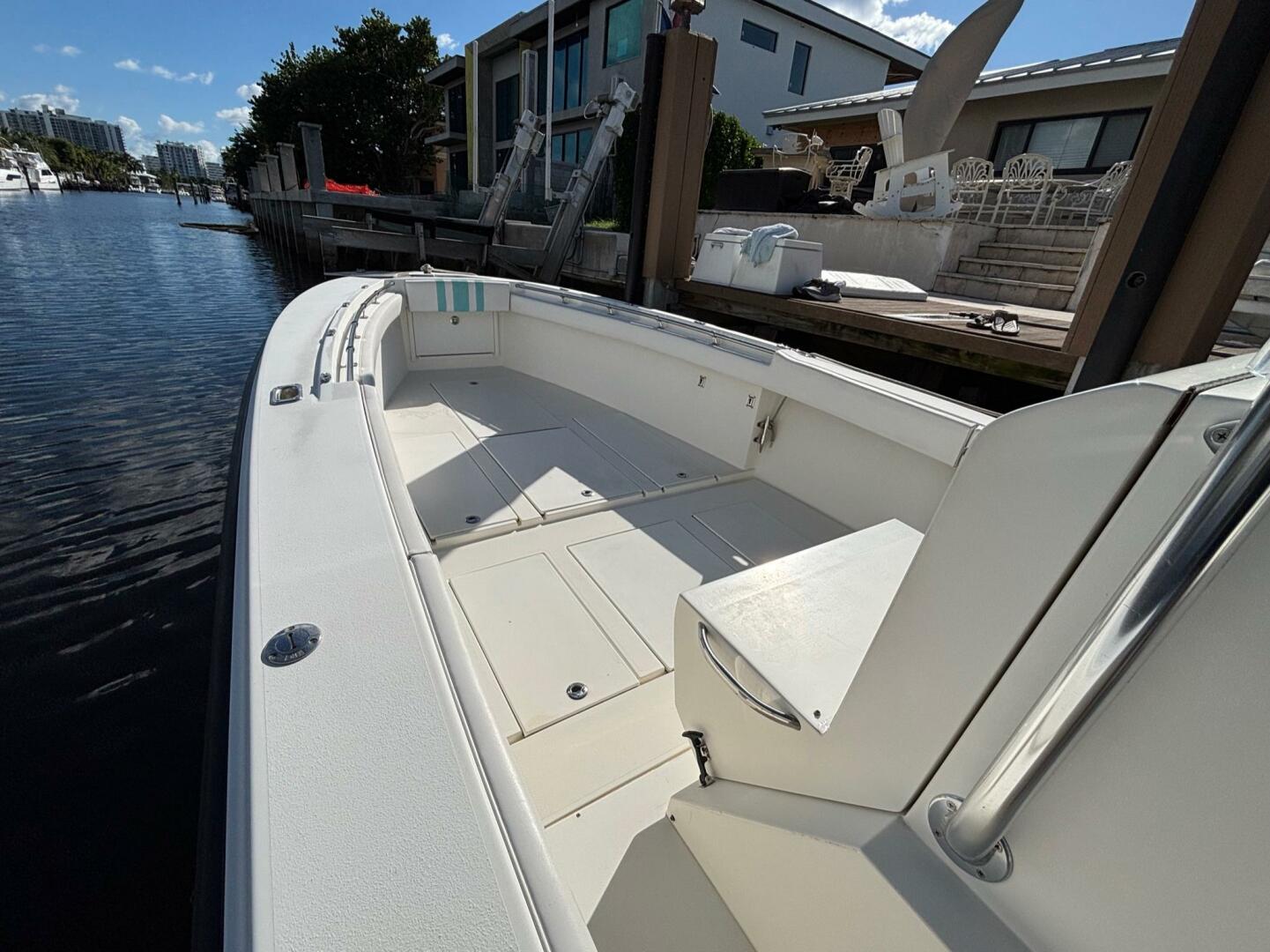This 28 CC is The Whitewater 28 is a sought after true offshore fishing platform. Its deep V hull is renowned for a smooth ride in all sea conditions. A true fishing machine. It has a huge forward area and an aft cockpit that is unobstructed by seats.