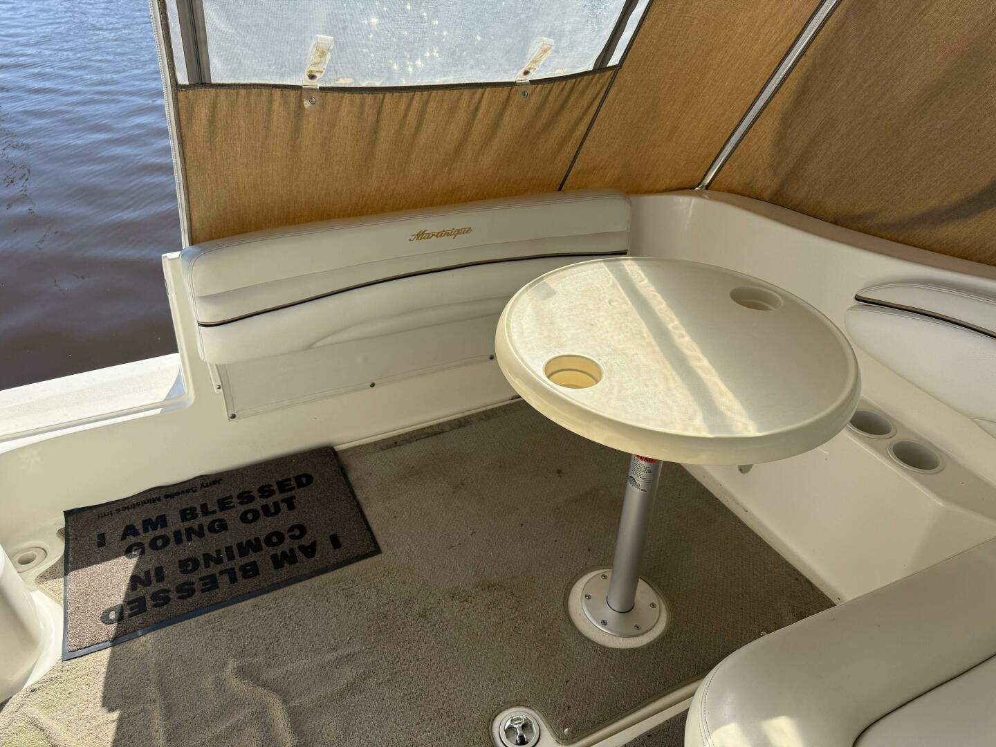 · Adjustable helm flip up bolster seat - portside lounge seating with aft facing seat - converts to sun pad