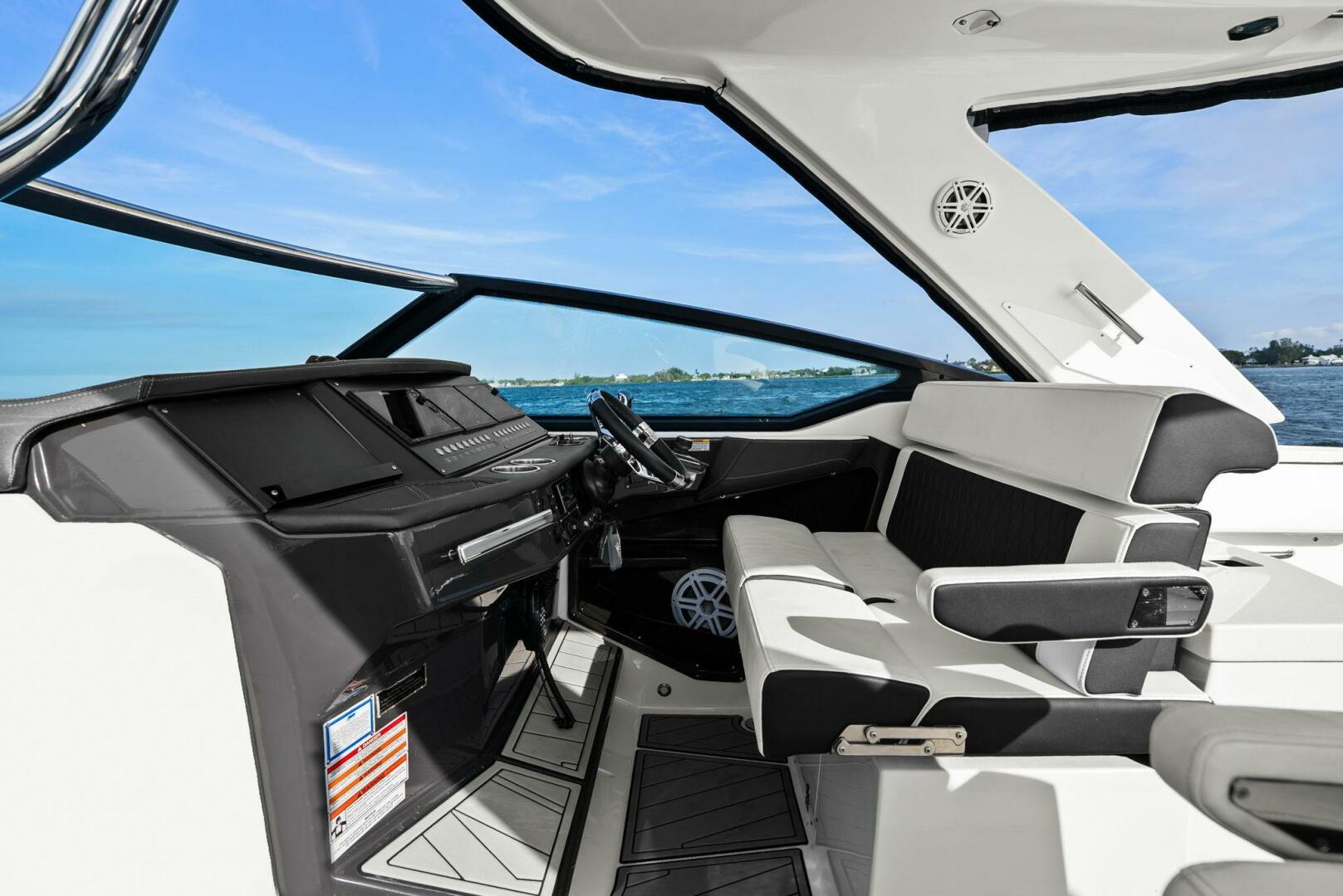 This exceptionally maintained 2023 Monterey 385 SS, powered by Triple Mercury 300 Verados (Painted White-70 Hrs) comes with Hardtop, Electric SureShade & upgraded Simrad Halo Radar. Cockpit includes the Entertainment Package complete with sink, Grill and Fridge. Cabin is fully equipped with berth, microwave, fridge, TVs, and couch. The Head is designed with toilet, vanity w/sink, vanity mirror & closet. Mercury Marine Skyhook GPS Virtual Anchor and Joystick Control add to the finishing touches!