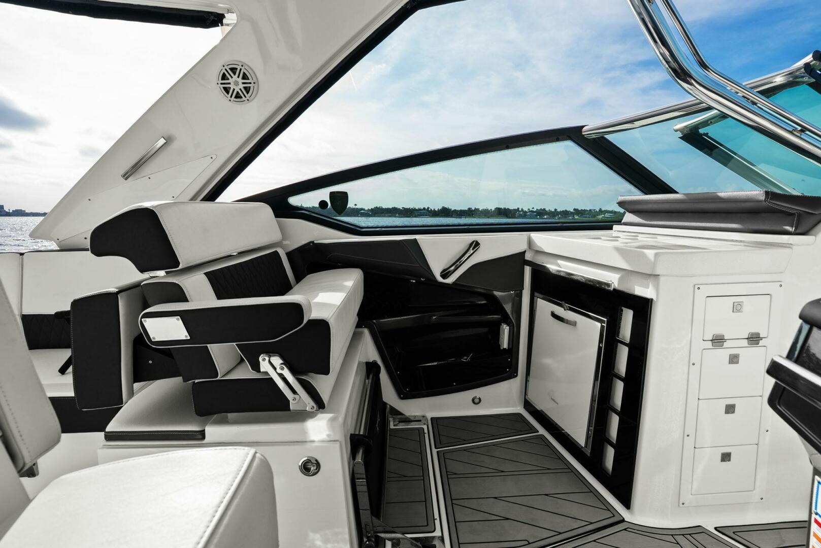 Monterey incorporates the best features for cruising the coastline with all the comforts for a day trip or overnight stay with this model. It has the size and range to make a Florida Keys excursion from Tampa Bay or a Bahamas crossing. Skyhook and Joystick control helps an owner look like a pro while waiting for bridges to open or coming into the dock with a steady breeze. The Cabin is comfortable and the Head is roomy. I was impressed with the creature comforts and performance and look forward to the final sea trial!