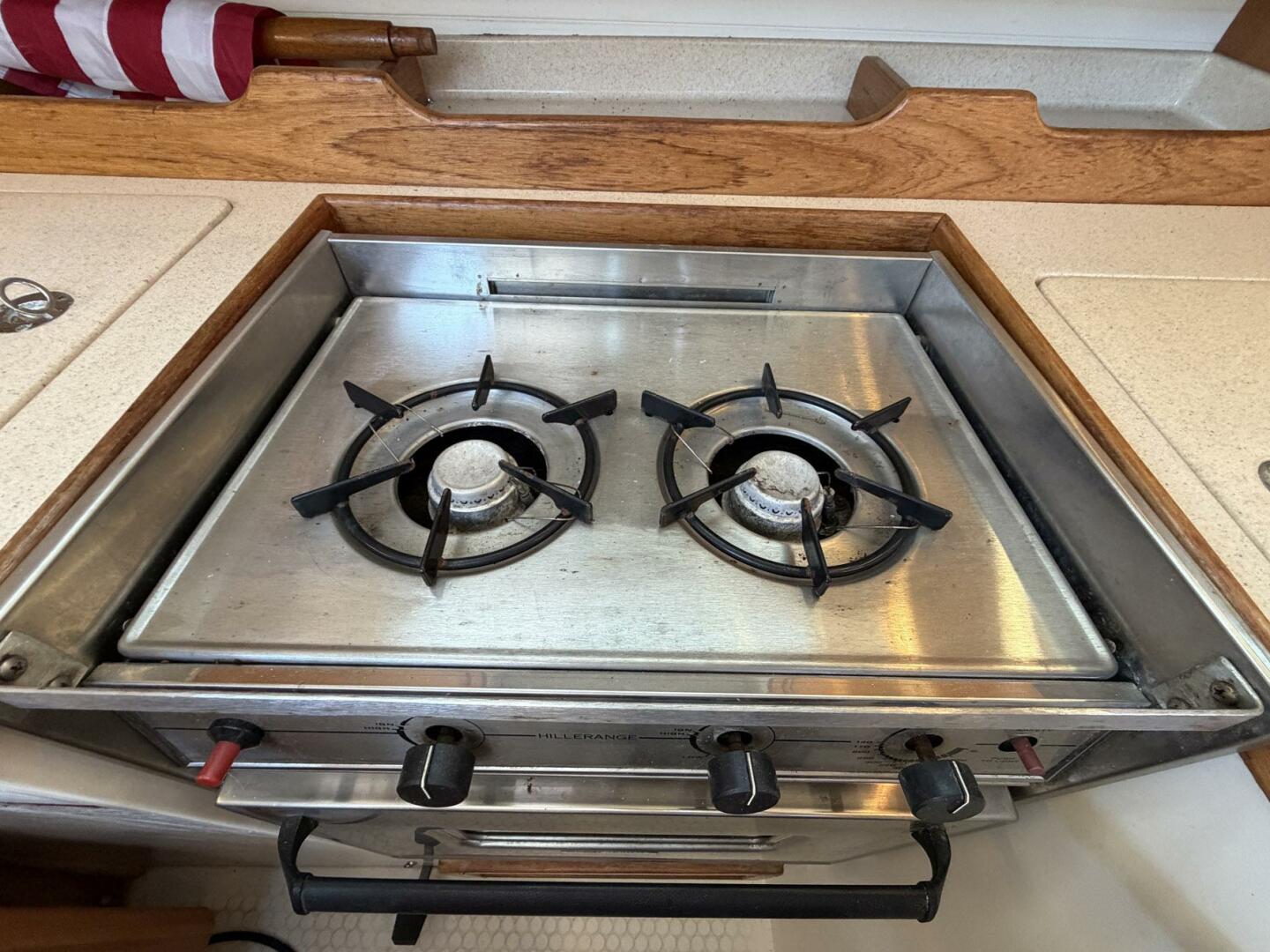 - Two-burner LPG stove/oven