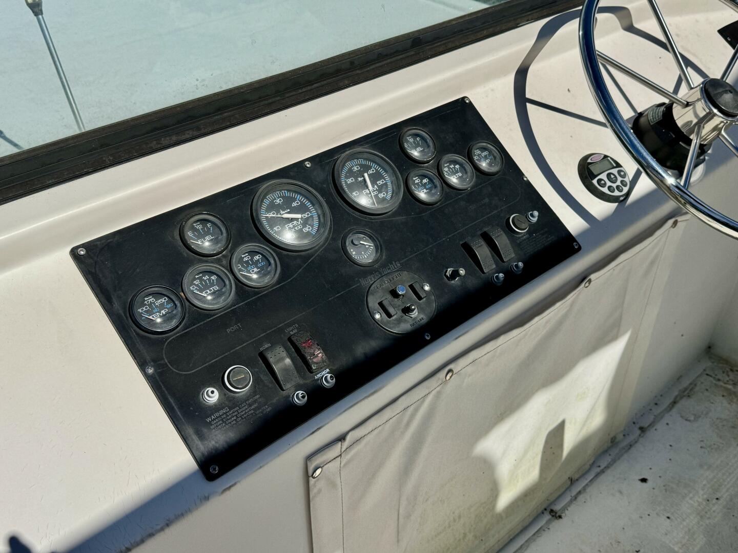 Oil Pressure, & Tachometer Gauges, plus Stereo Remote at Flybridge, HyNautic Hydraulic Power Steering,