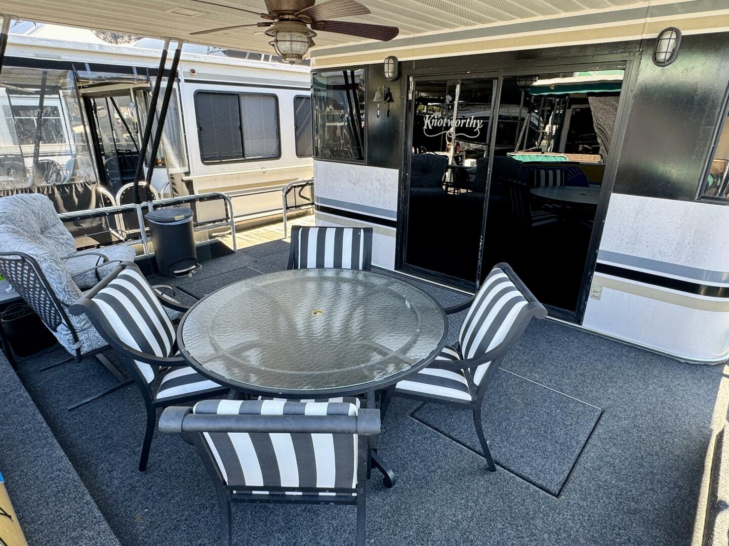 You'll find steps to the starboard size that will return you to the bow's covered patio where we began.