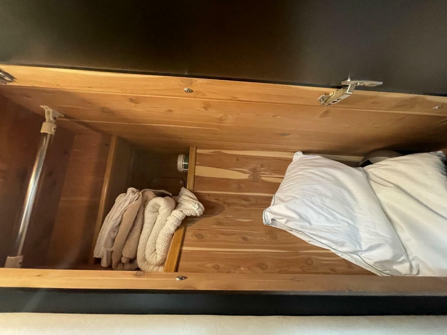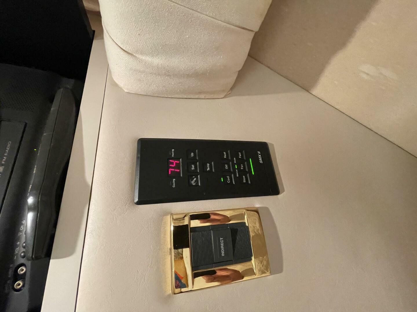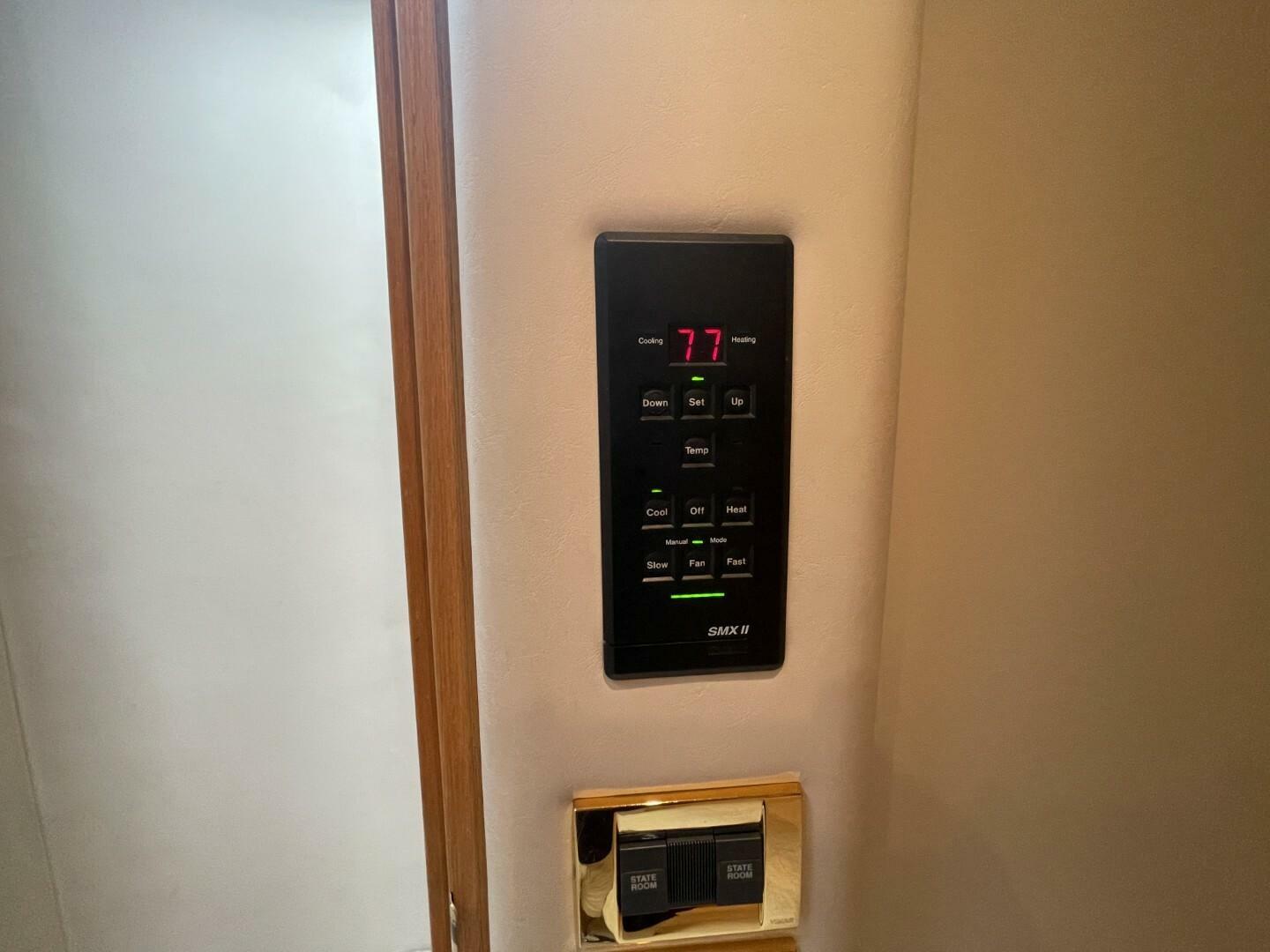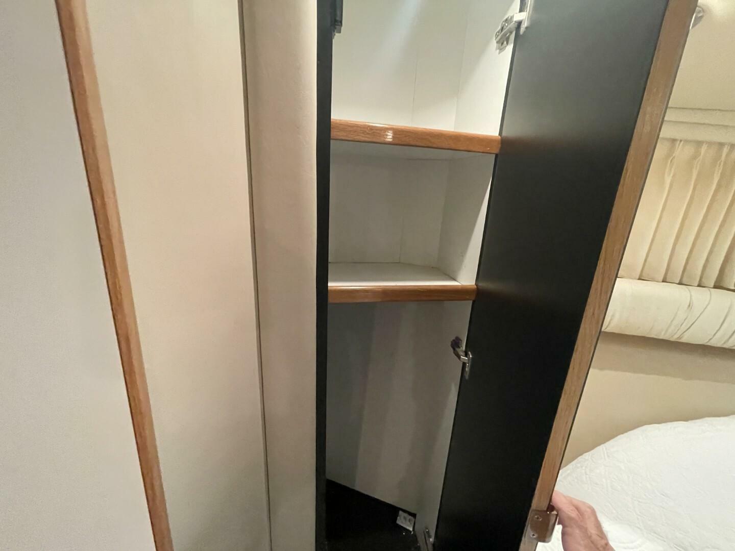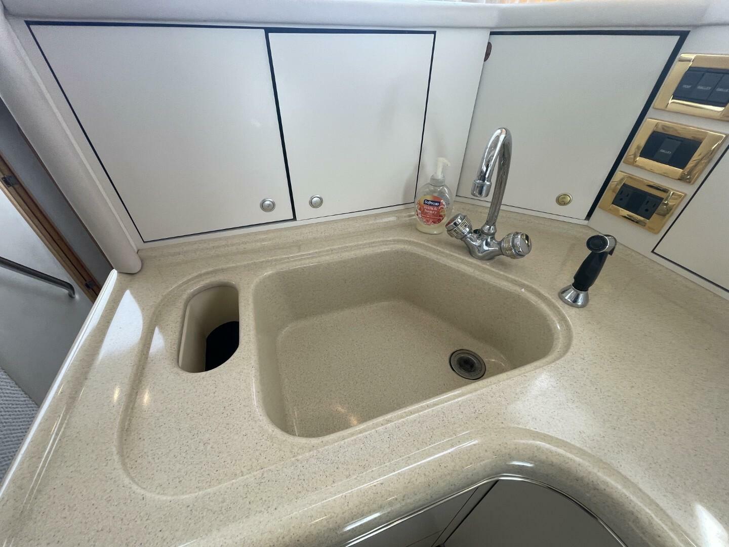 Starting as you board her from the large Swim Platform, you enter her cockpit which has been enclosed to make a great outdoor sitting area. She has a large storage hatch in the transom along with a bench seat. Her engine access is through a large hatch in the cockpit sole. Her cockpit, stairway to the bridge and bridge deck is on the port side. The stairway to the bridge is wide and easy to navigate. Her bridge is large and has her helm station with two swivel seats, a wet bar and l-shaped lounge forward, all kept comfortable by the reverse cycle heat and air. From the cockpit you enter her cabin via a sliding glass door and the first area is the salon, dinette and galley area. She has a settee along the port side that is electronically converted into a berth with the dinette forward. Her starboard side has an occasional chair and entertainment center, a country kitchen bar and galley forward. You move down the companionway steps and her guest cabin is to starboard and features an upper and lower berth that converts to a settee and is home to her washer/dryer. Her VIP Stateroom is to port and features a queen berth and entrance to the Guest Head (it also has an entrance from the companionway). All the way forward is her Master Stateroom which has an Island Queen Berth, Storage and entrance to the Master Head which is very impressive.